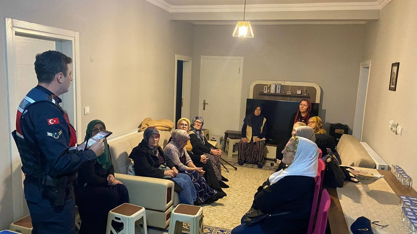 Düzce'de kadınlara jandarma ekipleri tarafından Kadın Acil Destek Uygulaması KADES ile uyuşturucu madde kullanımını ve satışını durdurmak amacıyla geliştirilen UYUMA projesi uygulamaları hakkında bilgilendirmelerde bulundu.