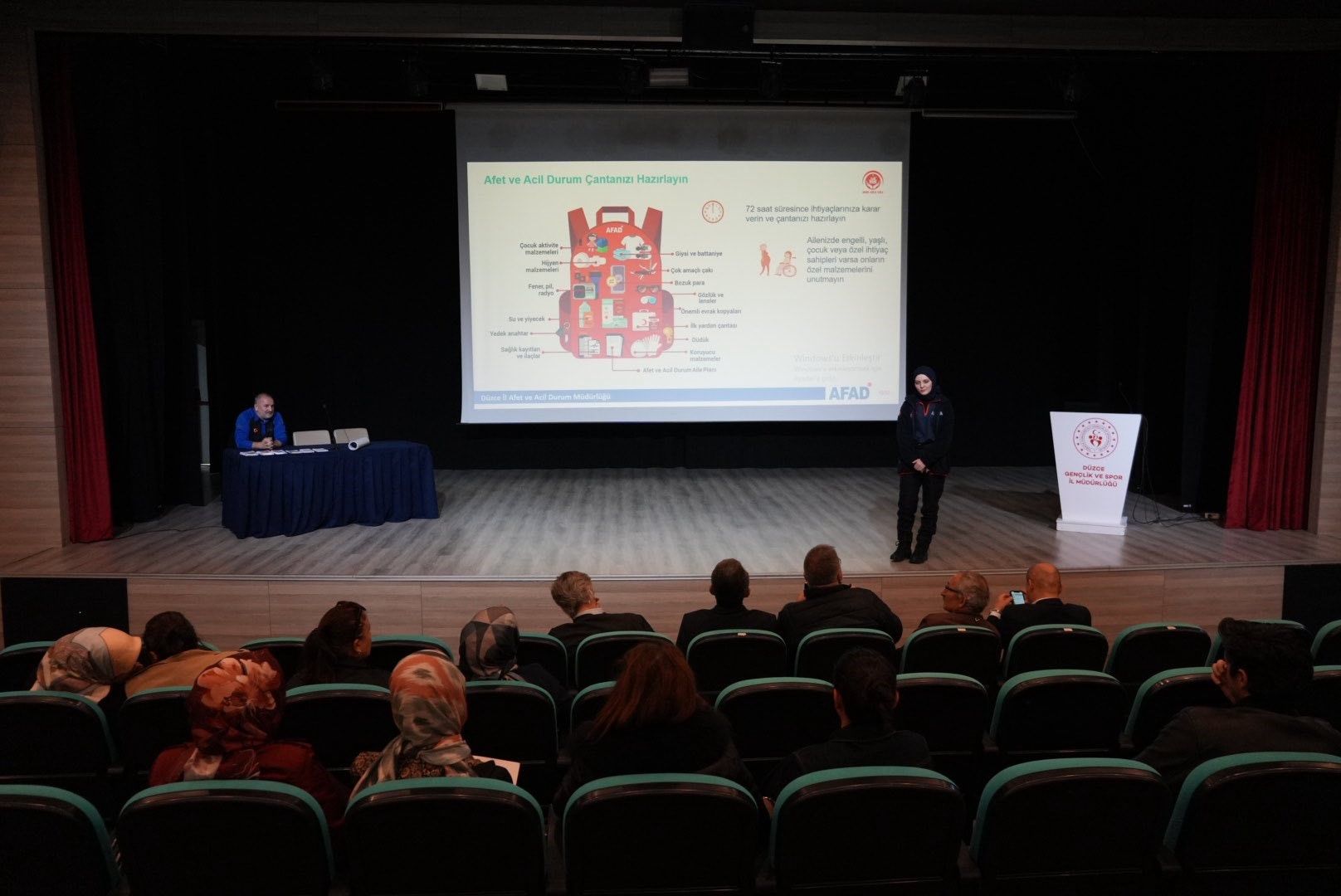 Düzce Gençlik ve Spor İl Müdürlüğü Konferans Salonu’nda, yurtlarda görev yapan Sivil Savunma Amirleri ve Yardımcılarına yönelik olarak Afet ve Acil Durum Yönetimi Başkanlığı (AFAD) ekipleri tarafından eğitim düzenlendi.