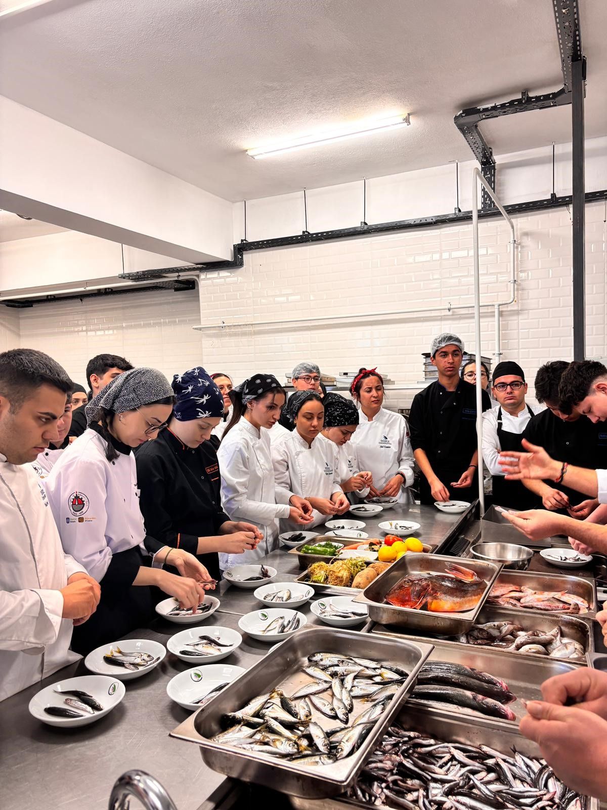 Uygulamalı eğitim kapsamında eğitmenler tarafından; deniz ürünleri mutfağında hijyen, sürdürülebilir avcılık, balık ve deniz ürünlerinin seçimi ve temizliği, doğru pişirme teknikleri ile lezzet dengesi gibi konularda önemli bilgiler paylaşıldı. Öğrencilerin teorik bilgilerini uygulama mutfağında pratiğe dökme fırsatı bulduğu etkinlik teşekkür belgesi takdimi ile sona erdi.