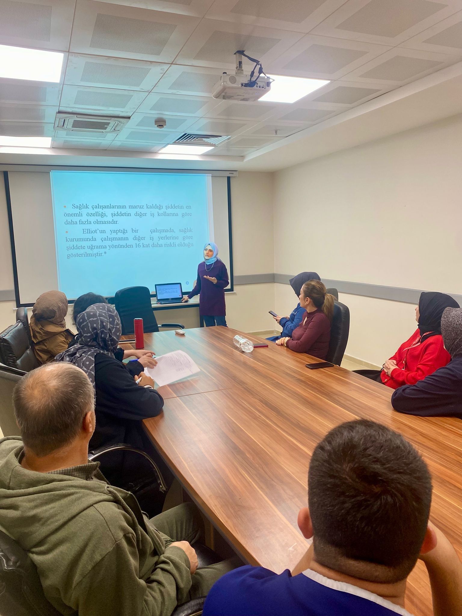 Çilimli İlçe Devlet Hastanesi Eğitim Birimi koordinasyonunda hastane personelinin acil durumlarda daha etkili ve güvenli müdahale edebilmesini sağlamak amacıyla ilçe devlet hastanesi toplantı salonunda, İlçe Toplum Sağlığı Merkezinde görevli Hemşire Tuğçe Ocak tarafından iki oturum olarak düzenlen eğitimin ilk oturumunda; İlçe Devlet Hastanesi ve Toplum Sağlığı Merkezinde görevli personellere şiddet olaylarına karşı alınacak önlemler, hızlı ve doğru iletişim yöntemleri ile güvenlik prosedürleri hakkında detaylı bilgiler verdi. Ayrıca, Beyaz Kod durumunda 1111’i tuşlayarak hızlıca çağrı yapma prosedürü vurgulandı.