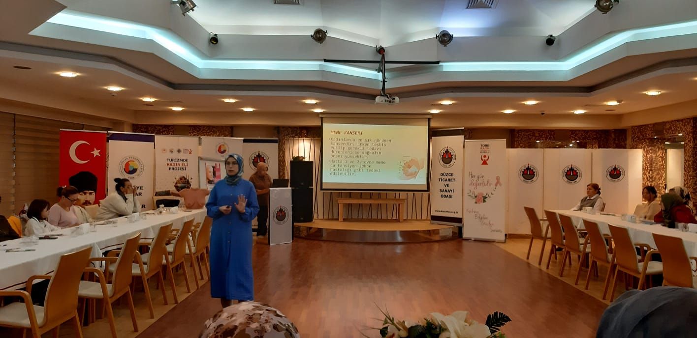 1-31 Ekim Meme Kanseri Farkındalık Ayı etkinlikleri kapsamında, Düzce Ticaret ve Sanayi Odası Kadın Girişimciler Kurulu üyelerine yönelik kanser farkındalık eğitimi düzenlendi.