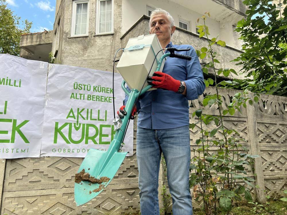 Düzce'de girişimci İsa Dervişoğlu'nun geliştirdiği ve patentini aldığı "akıllı kürek" gübrenin istenilen miktarda ve derinlikte bitkinin kök bölgesine verilmesini sağlıyor.