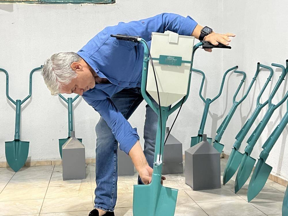 Topraktaki verimin akıllı kürek ile artacağını öngören Dervişoğlu, "Akıllı kürek, toprak altındaki gübreyi bitkiye daha çabuk ve doğru şekilde vermeye yarayan bir aparat. Verimi, bereketini artırıyor. Dönüm alanına düşen verimi 1.5-2 misli yukarıya çıkartmak gibi bir hedefimiz var. Bu aparat, tarım makinelerinin giremediği, çalışması zor olan yerlerde devreye giriyor. Bunu elle taşıyabiliyoruz, uygulama yapabiliyoruz. Ne kadar ürün atmak istersek ziyan etmeden toprağın altına bırakabiliyoruz" şeklinde konuştu.