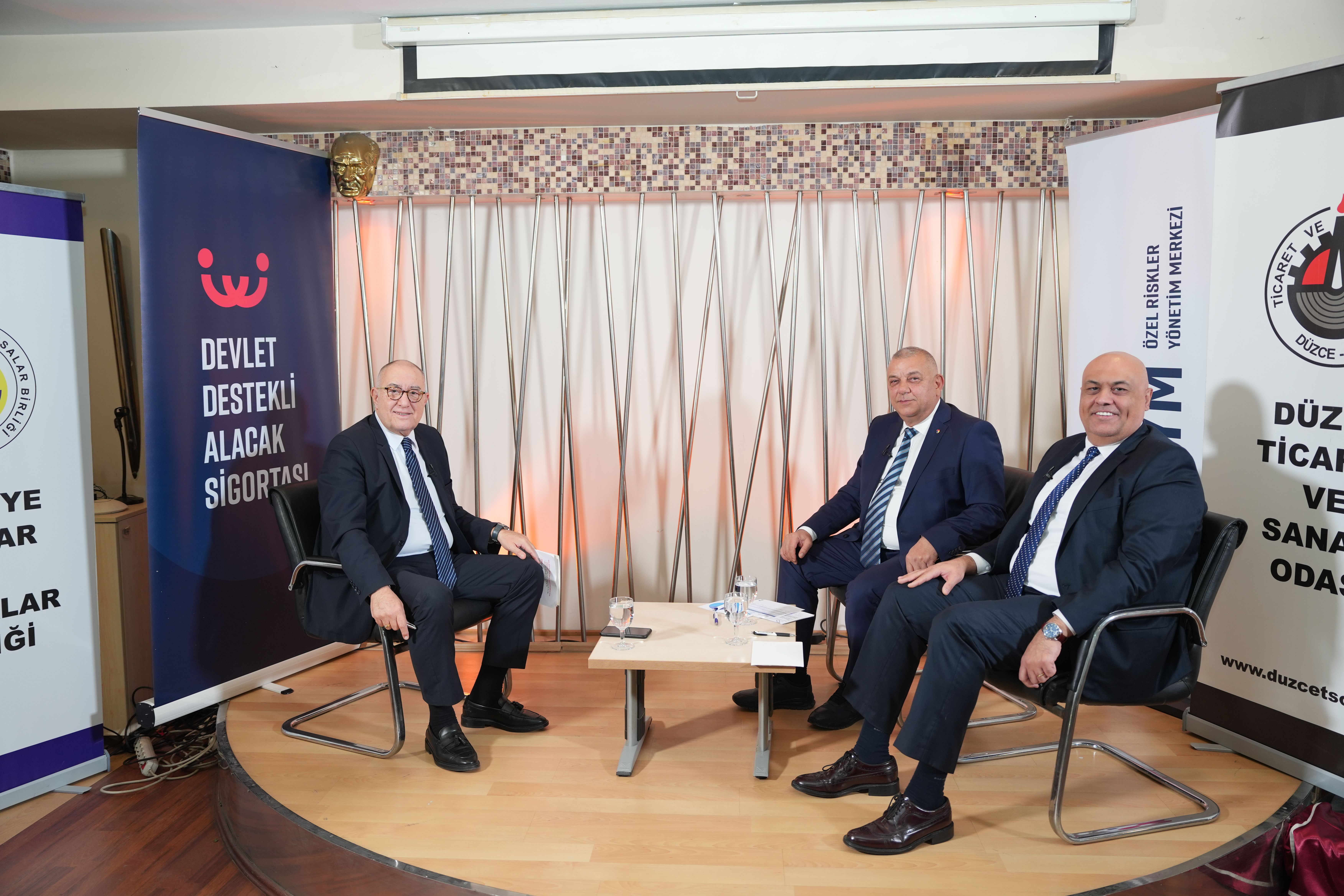 Program moderatörü Noyan Doğan’ın Devlet Destekli Alacak Sigortası ürünü hakkındaki soruları yanıtlayan Düzce Ticaret ve Sanayi Odası Yönetim Kurulu Başkanı Erdoğan Bıyık ve Türk Reasürans Genel Müdür Yardımcısı Ali Sertaç Canal, konuyla ilgili katılımcılardan gelen sorulara da yanıtlar verdi.
