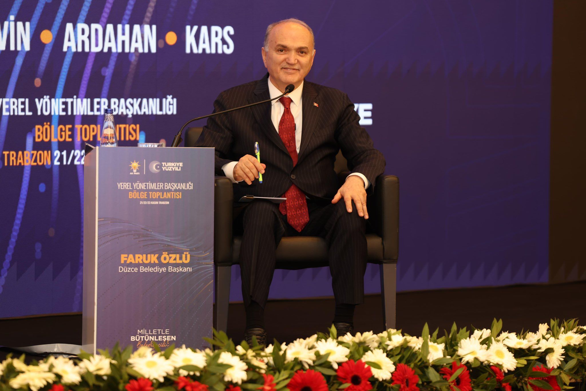 Düzce Belediye Başkanı Faruk Özlü, Trabzon’da düzenlenen AK Parti Yerel Yönetimler Başkanlığı Bölge Toplantısı’na katıldı. Toplantıda Yerel Yönetimler Başkan Yardımcısı Recep Altepe’nin moderatörlüğünde, Gaziantep Büyükşehir Belediye Başkanı Fatma Şahin ve önceki dönem Ulaştırma ve Altyapı Bakanı Adil Karaismailoğlu ile belediyecilik üzerine görüşlerini paylaştı.