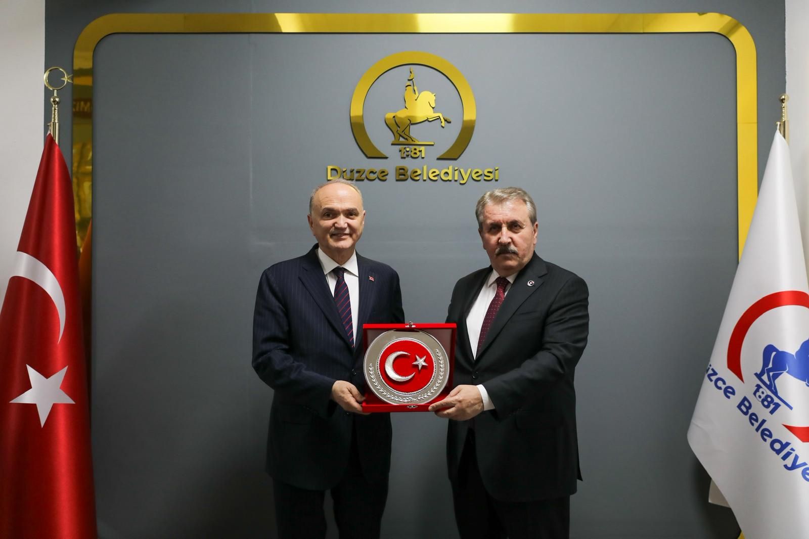 Bir dizi temasta bulunmak üzere Düzce’ye gelen Büyük Birlik Partisi Genel Başkanı Mustafa Destici Düzce Belediye Başkanı Dr. Faruk Özlü’yü makamında ziyaret etti. “Hepimiz aynı kilimin desenleriyiz” diyerek sözlerine başlayan Genel Başkan Destici, Başkan Özlü’nün Düzce için güzel hizmetler yaptığını dile getirdi.