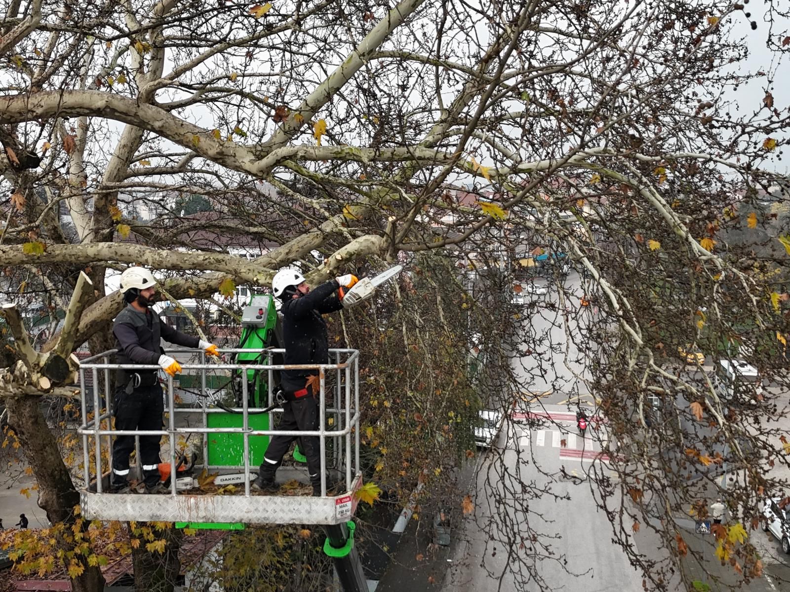 Düzce Belediyesi Park ve Bahçeler Müdürlüğü, kış aylarının gelmesiyle birlikte ana arterlerde bulunan ağaçların sürücü ve yayalar için tehlike oluşturmaması adına bakım ve temizlik çalışmalarına ara vermeden devam ediyor.