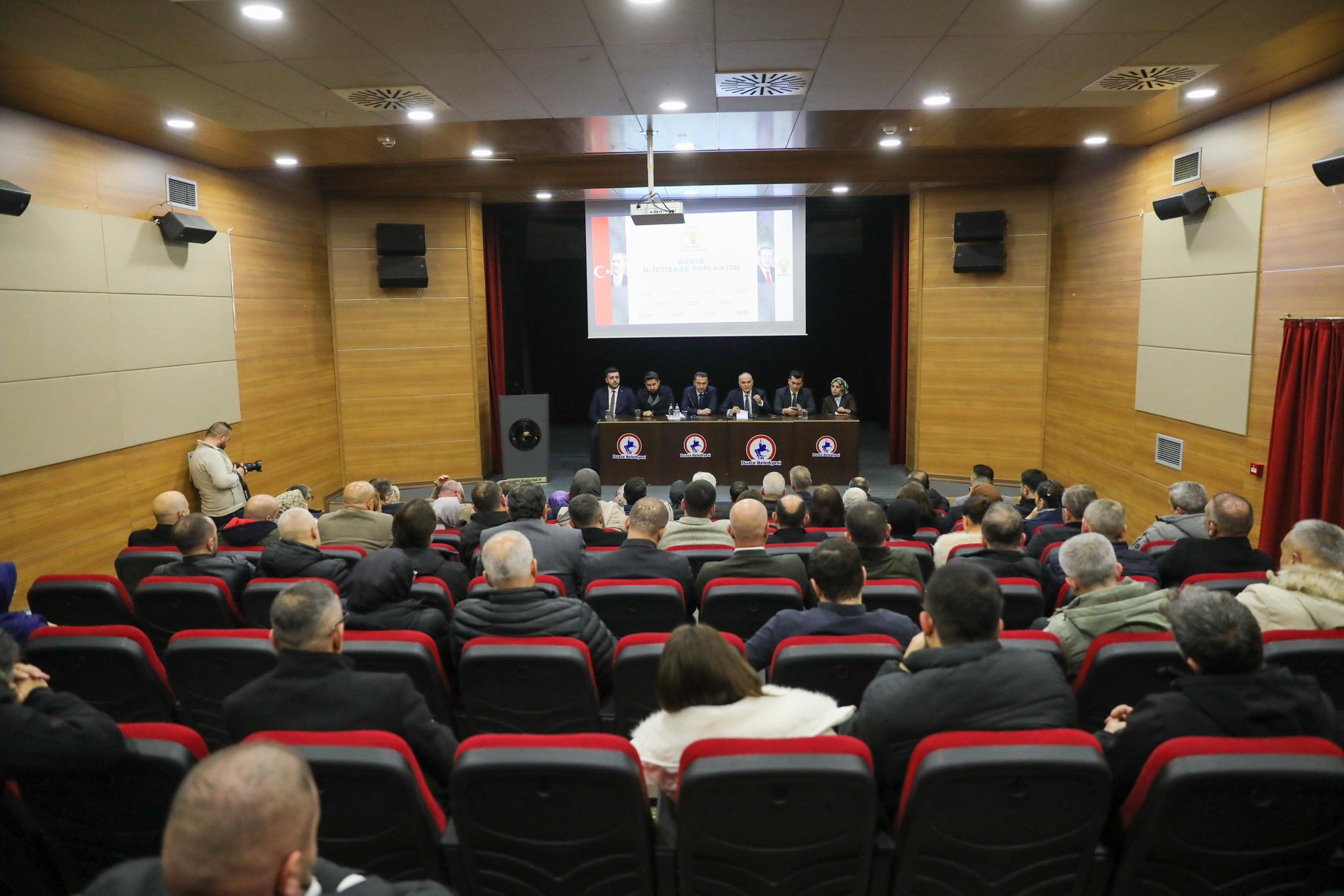 İstişare Toplantısı’nda Düzce’ye yönelik devam eden ve planlanan projeler ele alınırken, teşkilat çalışmaları ve yerel yönetim hedefleri de değerlendirildi. Başkan Özlü, ortak akıl ve istişare kültürünün önemine dikkat çekerek, güçlü bir dayanışma ile Düzce’ye hizmet etmeye devam edeceklerini ifade etti.