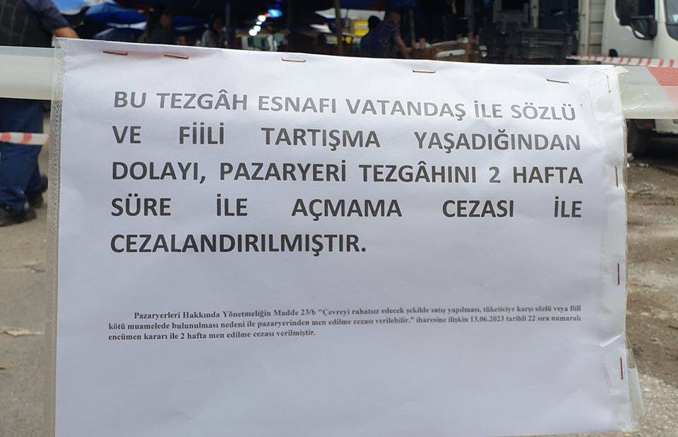 Kaynaşlı Belediyesi, Vatandaşla sözlü ve fiili tartışma yaşayan pazarcı esnafına 2 hafta süre ile tezgah açmama cezası verdi.