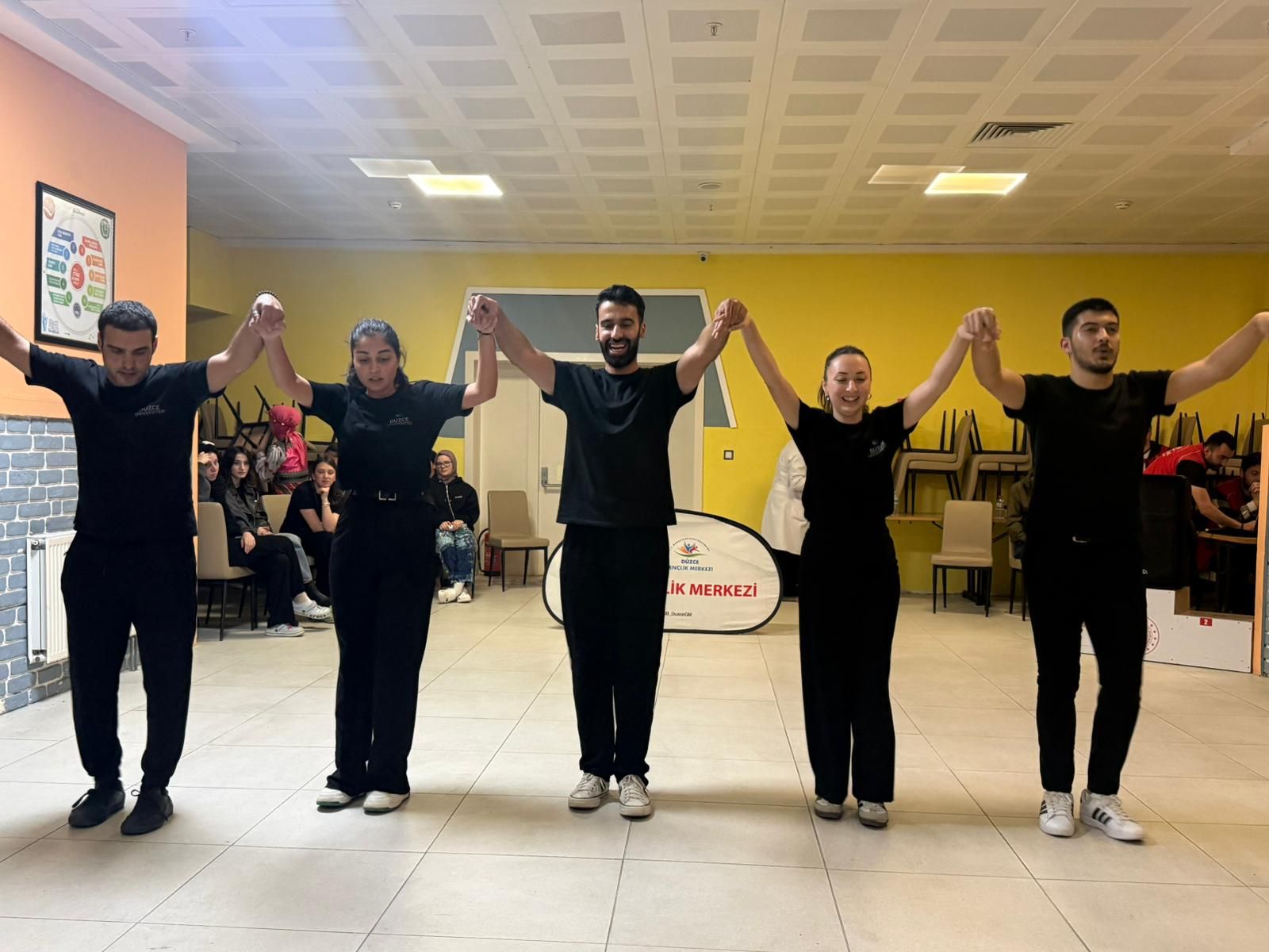 Yemek ikramının ardından, Düzce Gençlik Merkezi halk oyunları ekibi sahne aldı. Horon gösterisi izleyenlere keyifli anlar yaşattı. Katılımcılar da zaman zaman gösteriye eşlik ederek Karadeniz’in enerjisini hep birlikte yaşadı. Etkinlik boyunca Karadeniz türküleri seslendirildi, öğrenciler gönüllerince eğlendi.