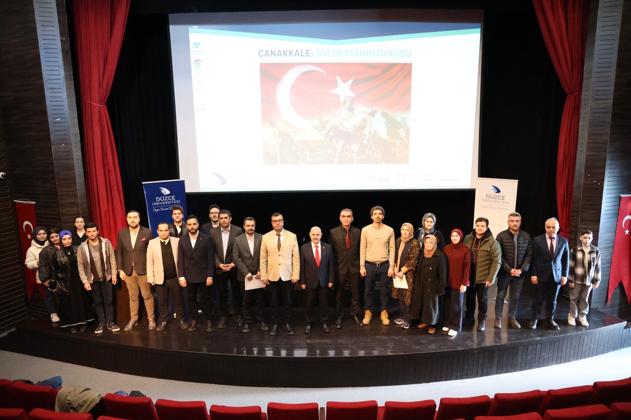 Düzce Üniversitesi Fen Edebiyat Fakültesi Tarih Bölümü tarafından Çanakkale Zaferinin 111. yıl dönümü kapsamında düzenlenen "Çanakkale: Bir Destanın Öyküsü" adlı program, gerçekleştirildi.