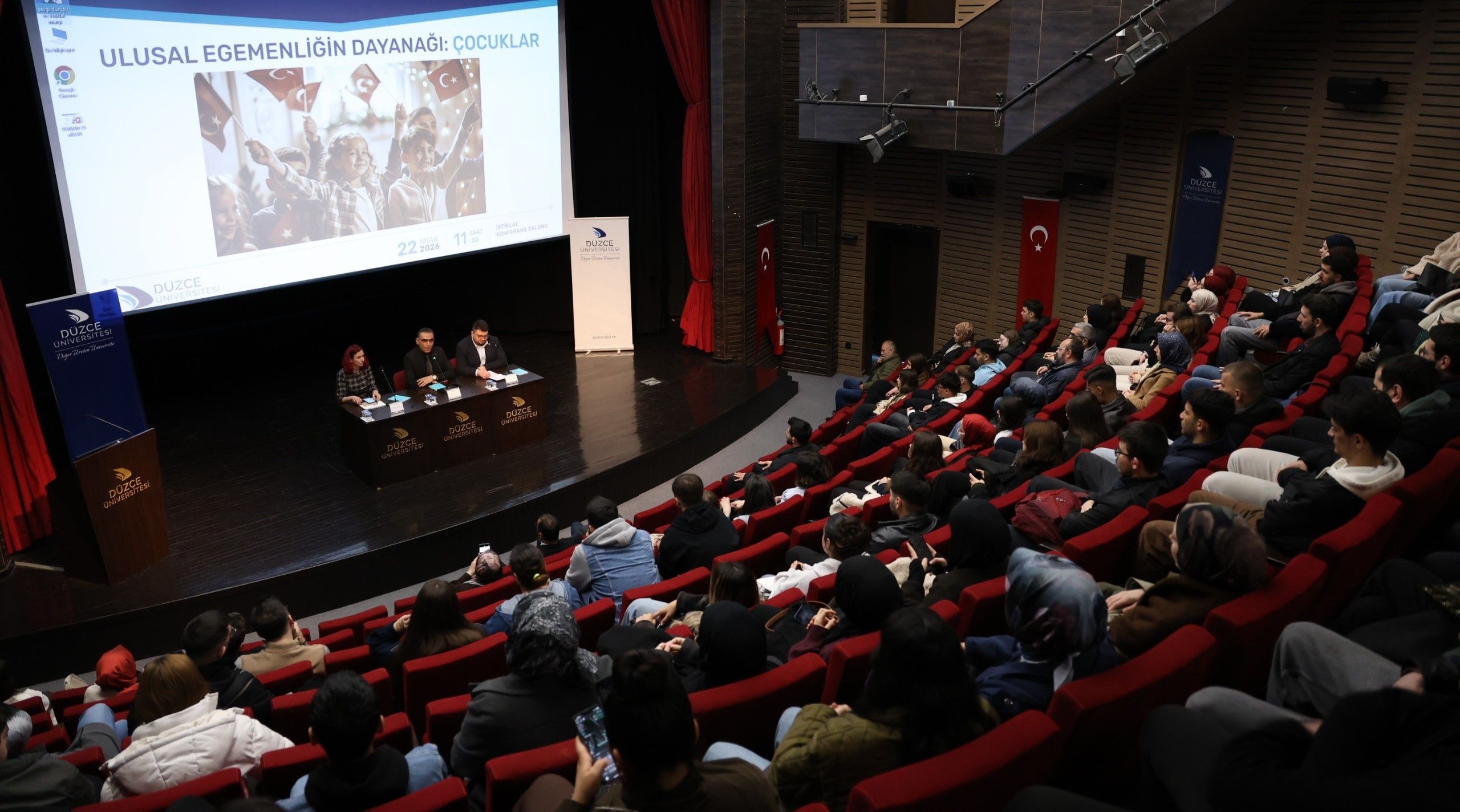 Düzce Üniversitesi Fen Edebiyat Fakültesi ile Sanat Tasarım ve Mimarlık Fakültesi tarafından, TBMM'nin açılışının 106. yıl dönümü ve 23 Nisan Ulusal Egemenlik ve Çocuk Bayramı dolayısıyla düzenlenen, "Ulusal Egemenliğin Dayanağı: Çocuklar" başlıklı panel öğrencilerin yoğun ilgisiyle gerçekleştirildi.
