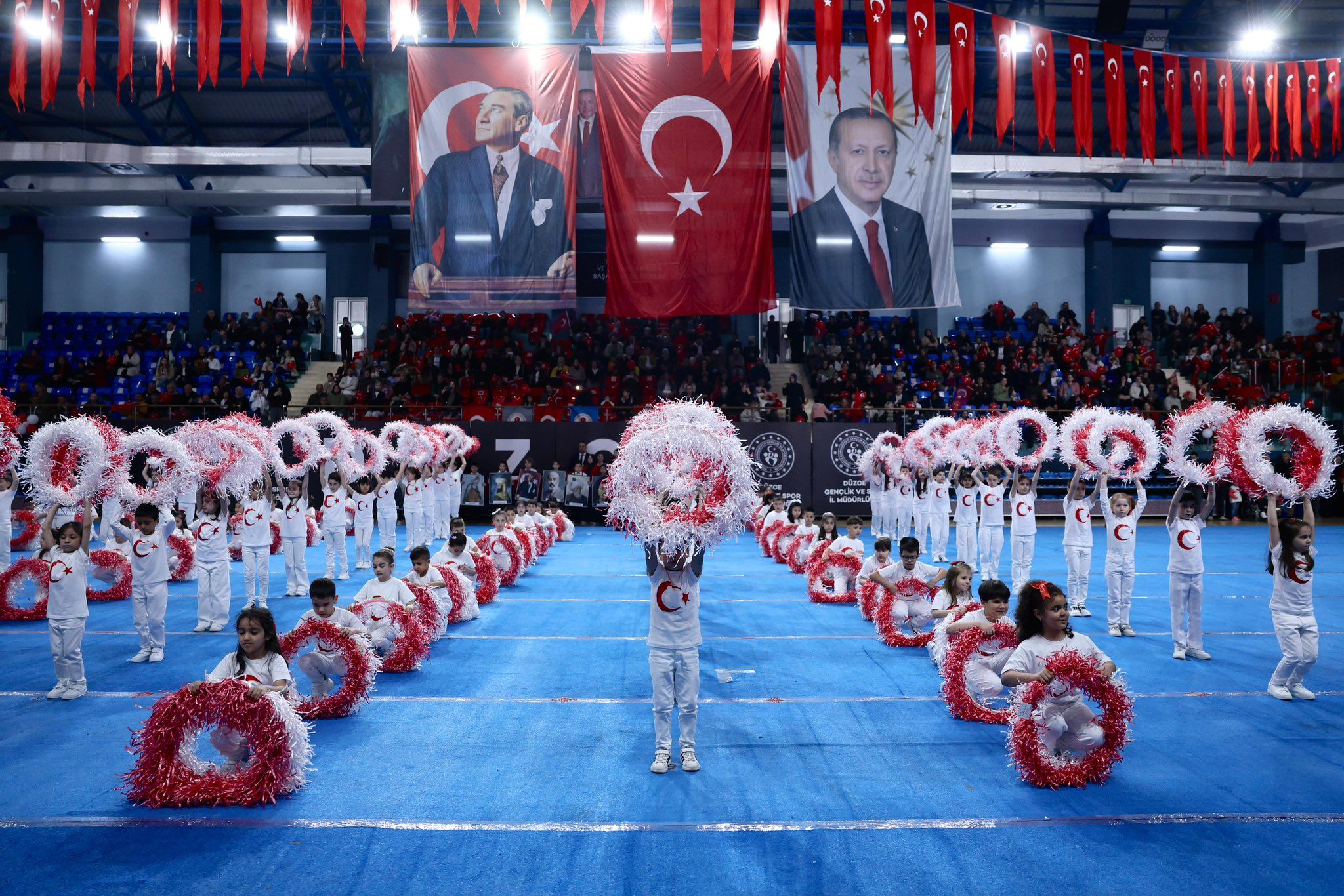 Düzce Valiliği öncülüğünde düzenlenen 23 Nisan Ulusal Egemenlik ve Çocuk Bayramı kutlama programı, Bahçeşehir Spor Salonu’nda yoğun katılım ve büyük bir coşkuyla gerçekleştirildi.
