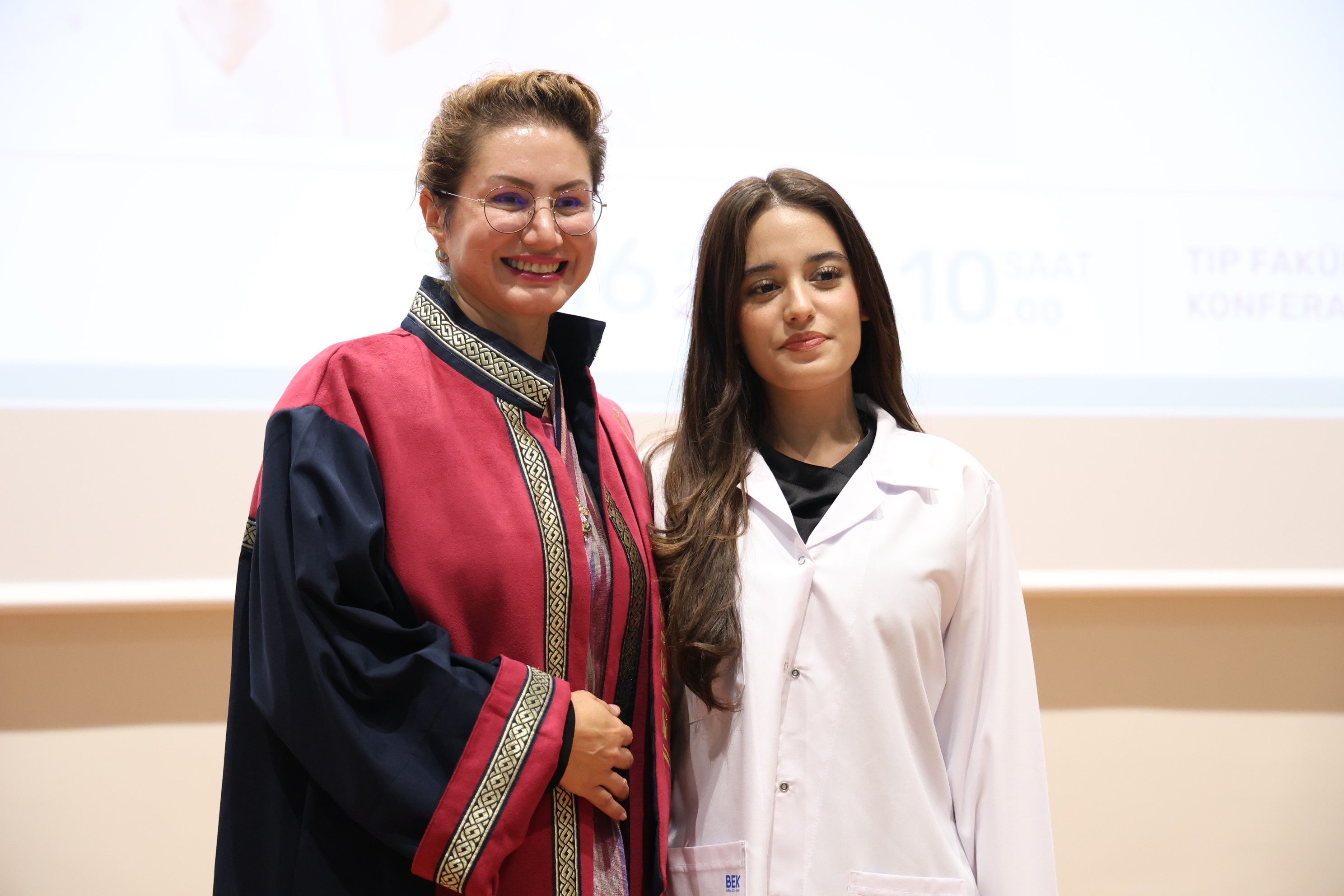 Davetli konuşmacıların sunumlarının ardından beyaz önlük giyme törenine geçildi. Halk sağlığına adanmışlığın ve evrensel meslek etiğinin timsali, temizliğin, güvenin ve sorumluluğun evrensel sembolü olan beyaz önlüklerini gururla giyen Düzce Üniversitesi Eczacılık Fakültesi öğrencileri, eczacılık mesleğine adım atmanın heyecanı ve mutluluğunu aileleriyle paylaşırken, eğitim hayatlarında unutulmaz bir ana tanıklık etti.