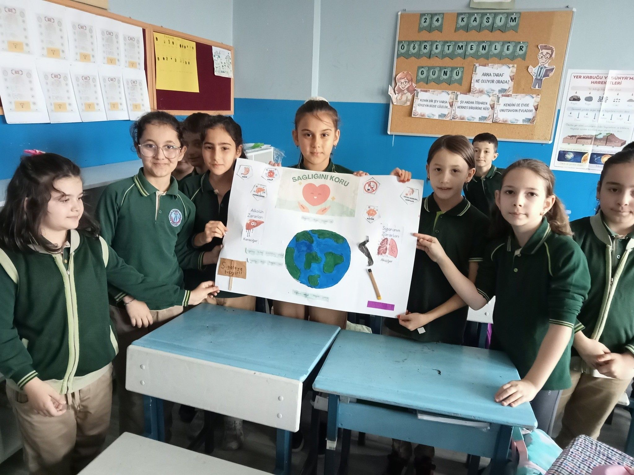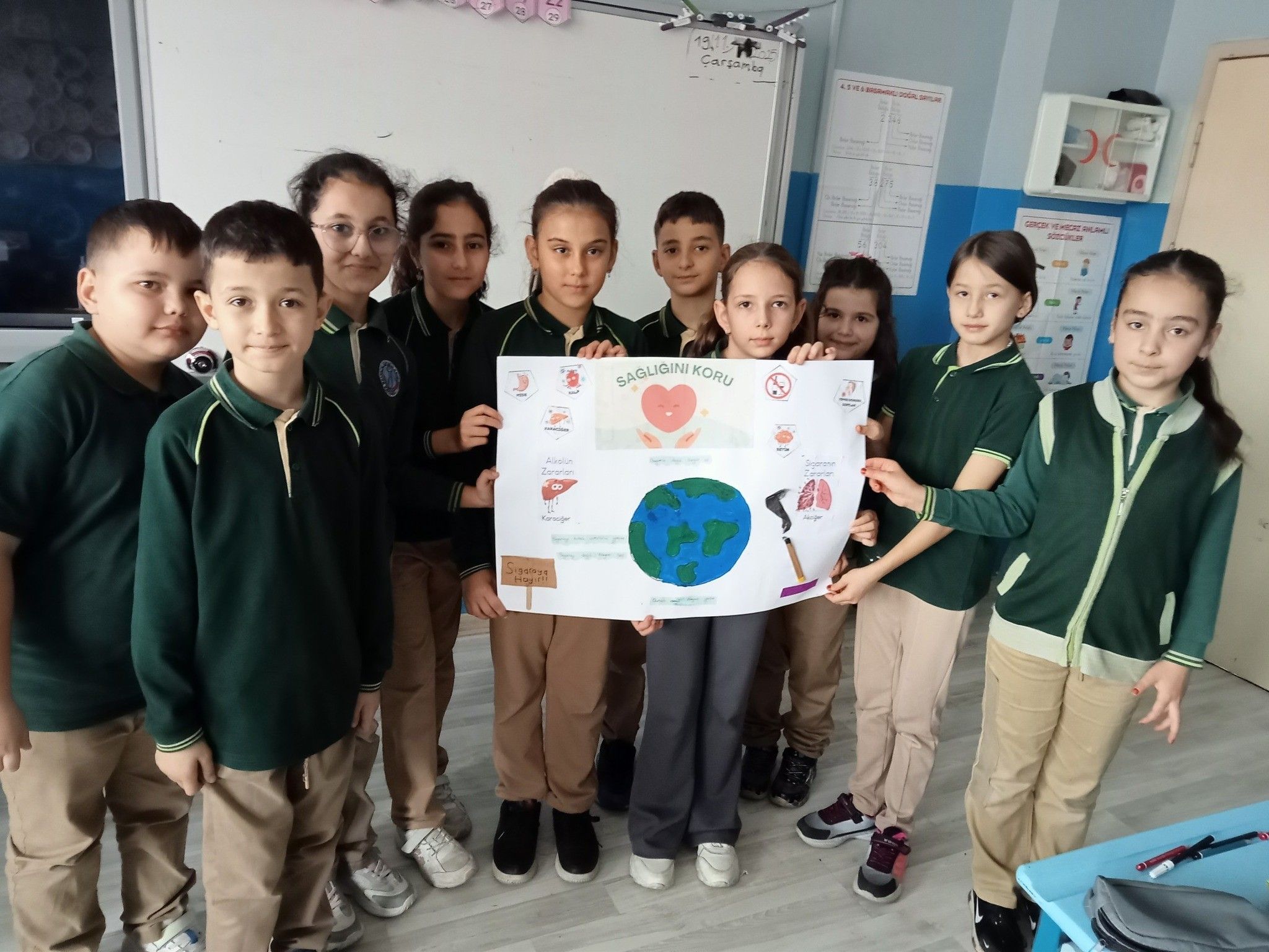 Karaçalı Süperlit İlkokulu 4/B sınıfı öğrencileri, sağlıklı yaşam bilincini geliştirmek ve zararlı alışkanlıklara dikkat çekmek amacıyla "Sigara ve Alkolün Zararları" konulu slogan ve afiş tasarımı etkinliği gerçekleştirdi. Öğretmenleri rehberliğinde düzenlenen grup çalışmasında öğrenciler, sigara ve alkolün hem bireysel hem de toplumsal etkilerini araştırarak kendi fikirlerini afişe yansıttı.