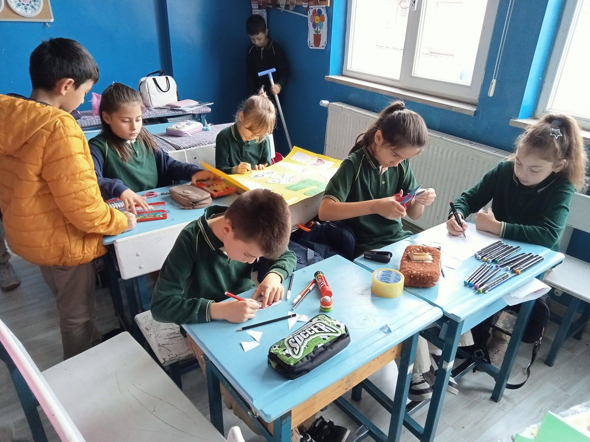 Etkinlik sırasında öğrenciler, grupla birlikte çalışarak kısa ve etkili sloganlar oluşturdu. Renkli çizimler, uyarıcı görseller ve mesaj verici sembollerle güçlendirilen afişler büyük ilgi gördü.