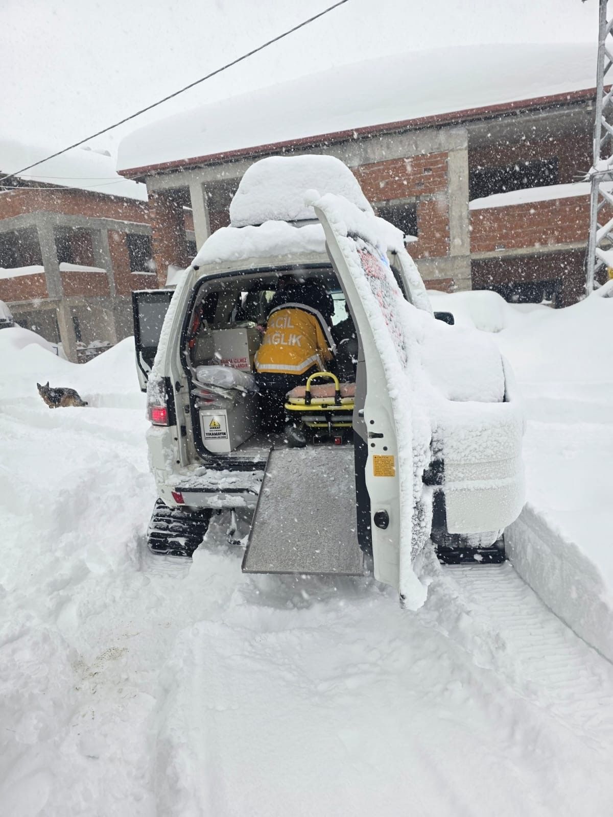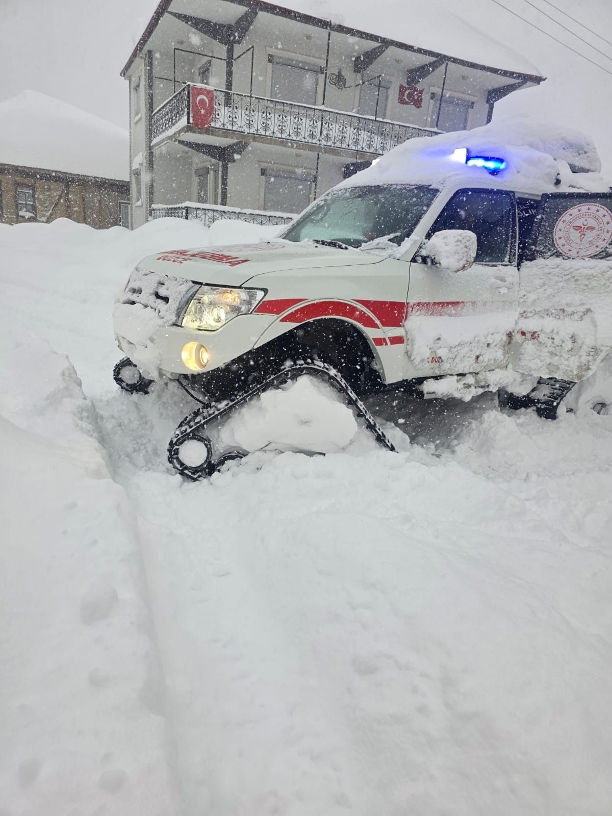 Düzce’de yoğun kar yağışında sağlık hizmetleri durmayarak paletli ambulanslarla sağlık vatandaşın ayağına gitti.