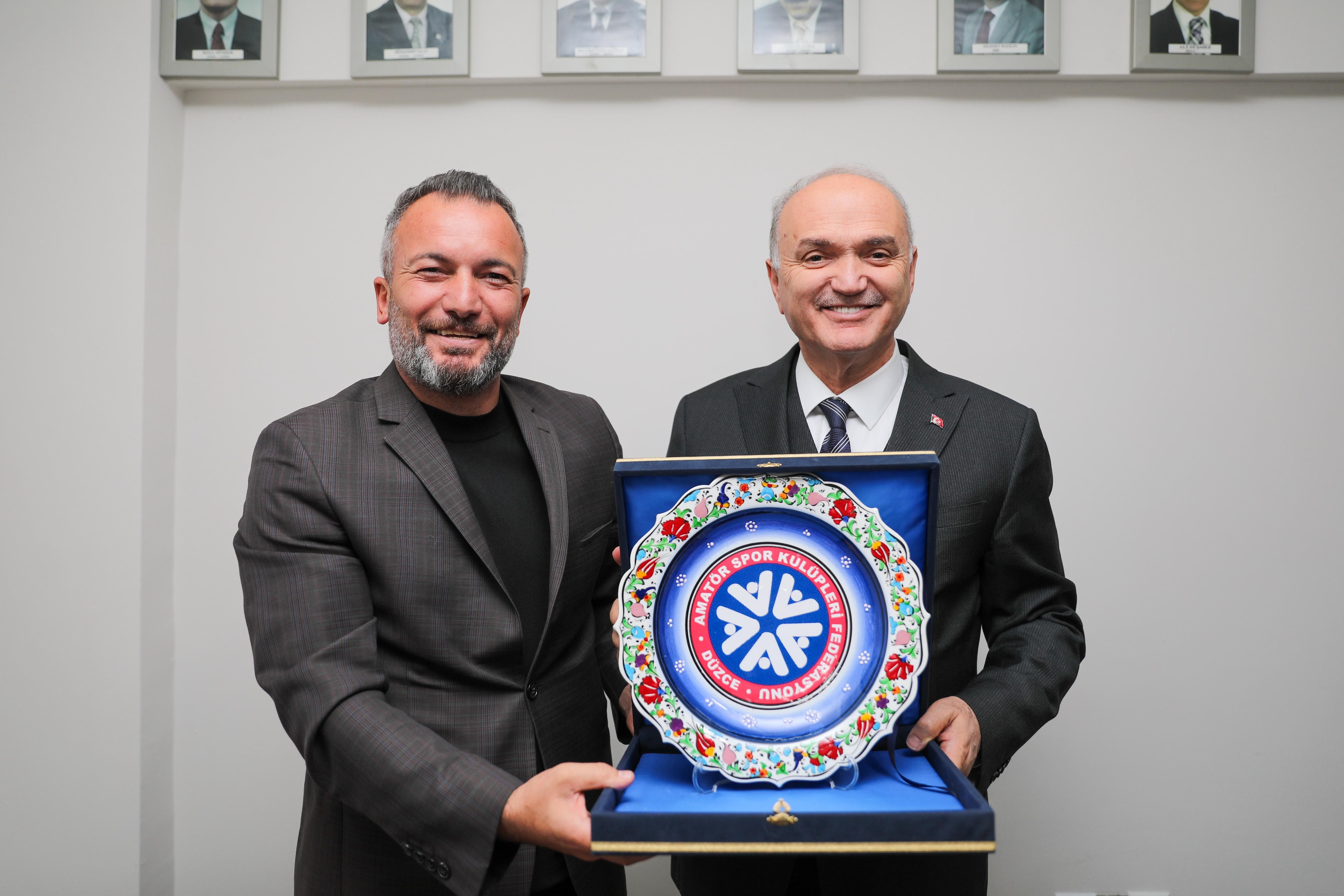 Düzce Belediye Başkanı Dr. Faruk Özlü, Amatör Spor Haftası kapsamında Düzce Amatör Spor Kulüpleri Federasyonu’nu (ASKF) ziyaret etti. Ziyarette ASKF Başkanı Murat Postoğlu, federasyon yöneticileri, İl Hakem Kurulu Başkanı Levent Görün, spor kulübü başkanları, antrenörler ve sporcular hazır bulundu.
