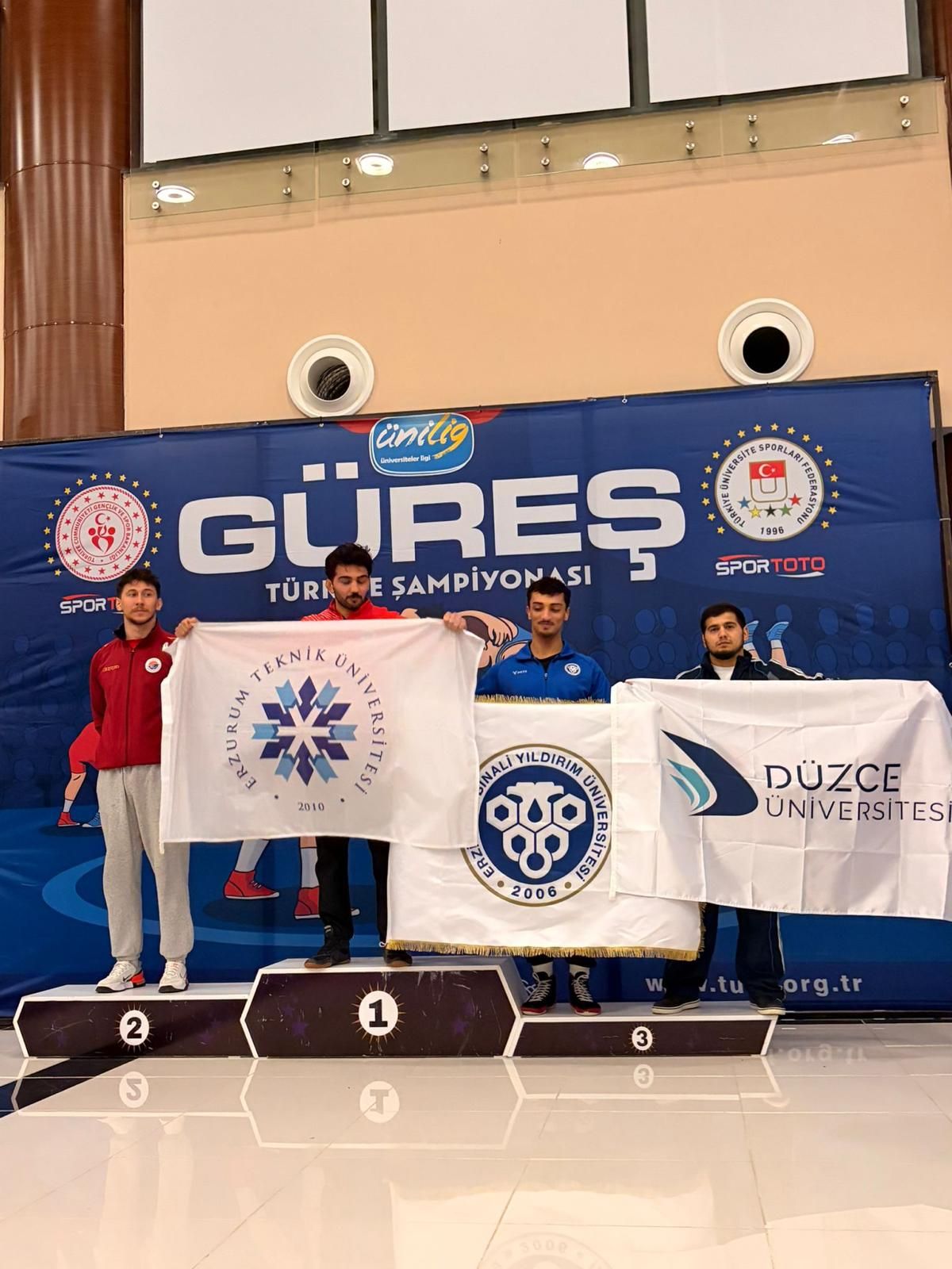 Burdur’da düzenlenen Ünilig Türkiye Güreş Şampiyonası’nda, Düzce Üniversitesi Spor Bilimleri Fakültesi Beden Eğitimi ve Spor Öğretmenliği Bölümü öğrencisi Oruj İbrahimkhalilov grekoromen 77 kg’da Türkiye 3.sü, Antrenörlük Eğitimi Bölümü öğrencisi Ömer Faruk Çağlayan, serbest stil 61 kg’da yine Türkiye 3.sü olarak önemli başarılara imza attı.