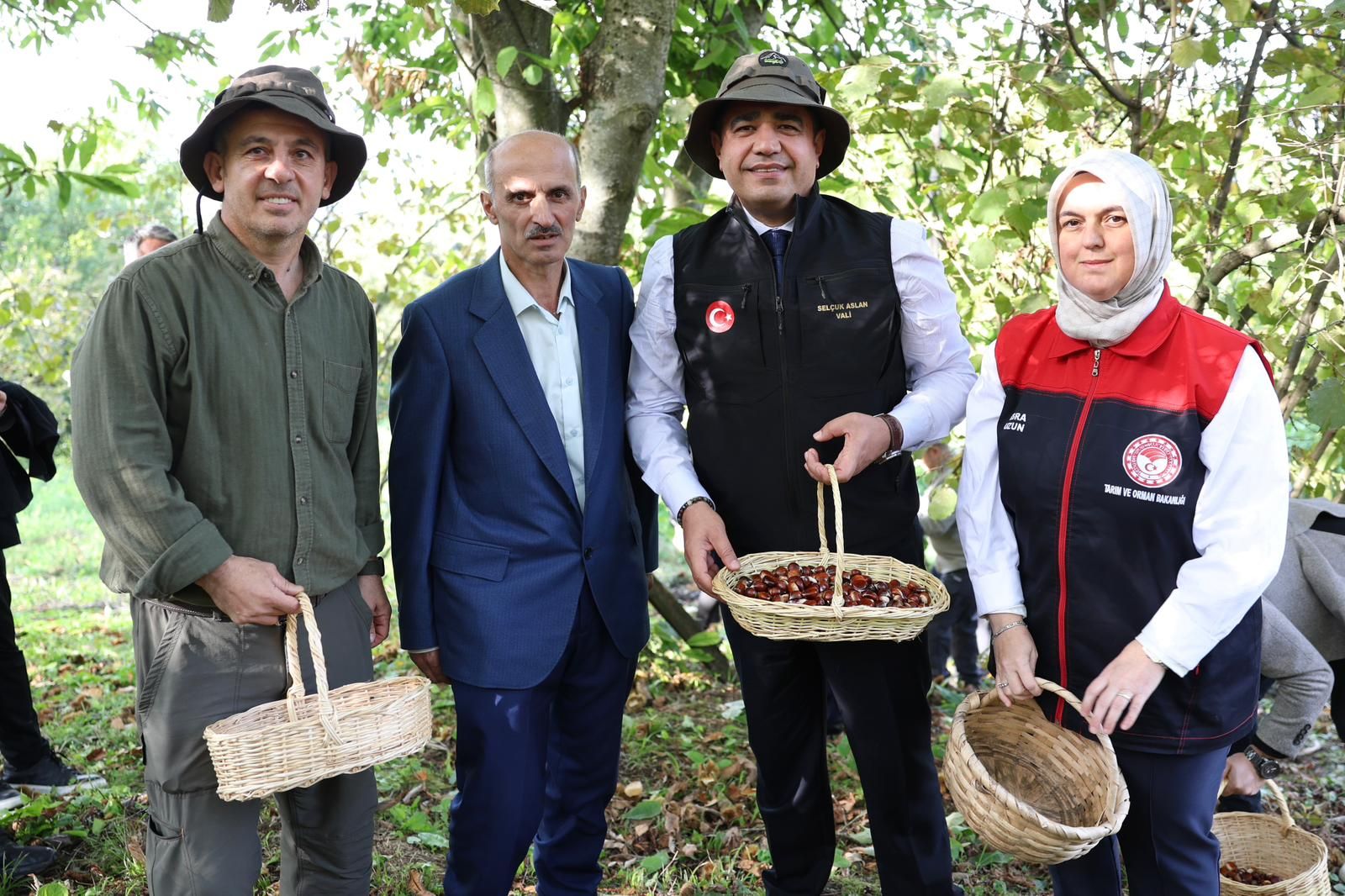 Vali Selçuk Aslan, köylülerle birlikte ormanda kestane toplayarak hasat coşkusuna ortak oldu. Düzce Kestanesi’nin Türkiye’nin dört bir yanından alıcı bulduğunu belirten Vali Aslan, ürünün korunması ve geliştirilmesi adına çalışmaların sürdürüleceğini ifade etti.