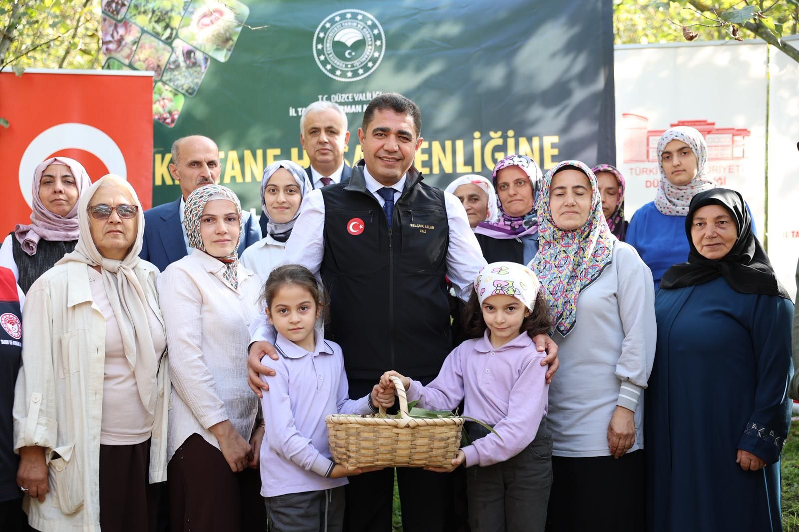 Vali Aslan açıklamasında, “Vatandaşlarımızla beraber kestane toplayıp, ilimiz merkezinde haftada iki gün kurulan pazarda Düzce Kestanesi’nin Türkiye’nin her yerinden alıcısıyla buluştuğunu gördük. Ürünümüzün korunması ve geliştirilmesi adına çalışmalarımıza devam edeceğiz. Bereketli olsun.” dedi.