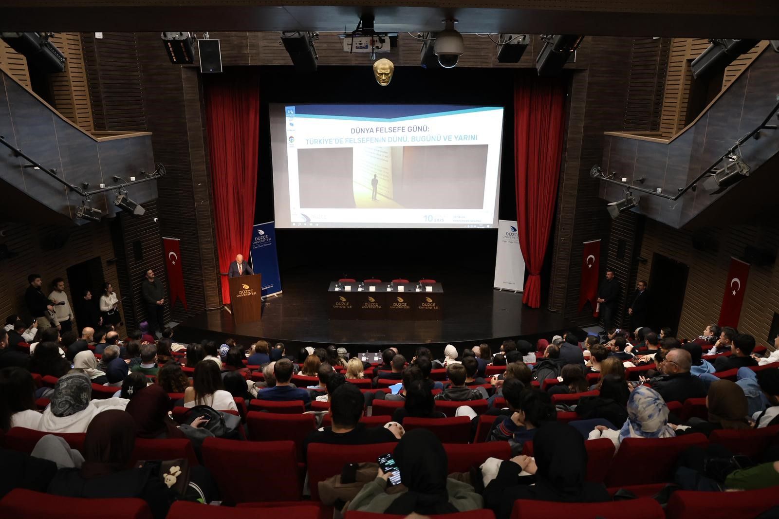 Rektör Nedim Sözbir, felsefeyi; insanın kendisini, dünya ile ilişkisini doğru okumaya yönelik köklü bir arayış şeklinde tanımlayarak "Bu toprakların ilim ve düşünce geleneği, asırlardır İslam medeniyetinin hikmet anlayışıyla şekillenmiştir. Farabi’den İbn Sina’ya, Gazali’den İbn Rüşd’e uzanan güçlü bir irfan çizgisi; hakikati anlama çabasını ilimle, akılla ve hikmetle birleştiren bir zemin oluşturmuştur. Bugün burada Türkiye’deki felsefi düşüncenin gelişimini ele alırken, aynı zamanda bu zengin mirasın bize sunduğu imkanları ve yönlendirdiği ufku birlikte değerlendirme fırsatı sunacağız" şeklinde konuştu.