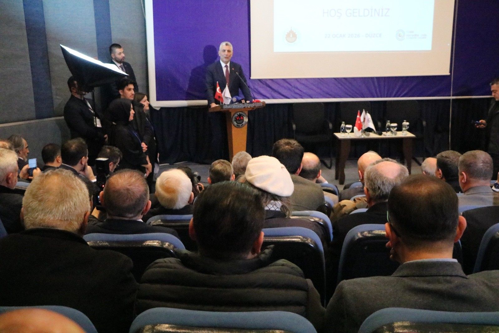 Bir dizi ziyaret ve temaslarda bulunmak üzere Düzce'ye gelen Ticaret Bakanı Ömer Bolat, Düzce Ticaret ve Sanayi Odası'nda (TSO) düzenlenen "İş Dünyası İstişare Toplantısı"na katıldı. Toplantıda Bakan Bolat'a, Düzce Valisi Mehmet Makas, Düzce Belediye Başkanı Faruk Özlü, AK Parti Genel Merkez ve il teşkilatı yöneticileri, daire amirleri, sektör temsilcileri ve çok sayıda iş insanı eşlik etti.