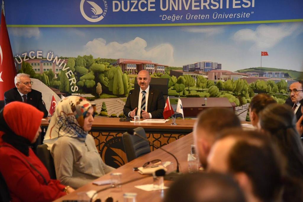 Düzce Üniversitesi Rektörü Prof. Dr. Nedim Sözbir, İstanbul’da düzenlenen dünyanın en büyük havacılık, uzay ve teknoloji festivali TEKNOFEST 2023’te ödül kazanan Düzce Üniversitesi akademisyenleri, öğrencileri ve Düzce Teknopark ekibi ile buluşarak tebriklerini iletti.