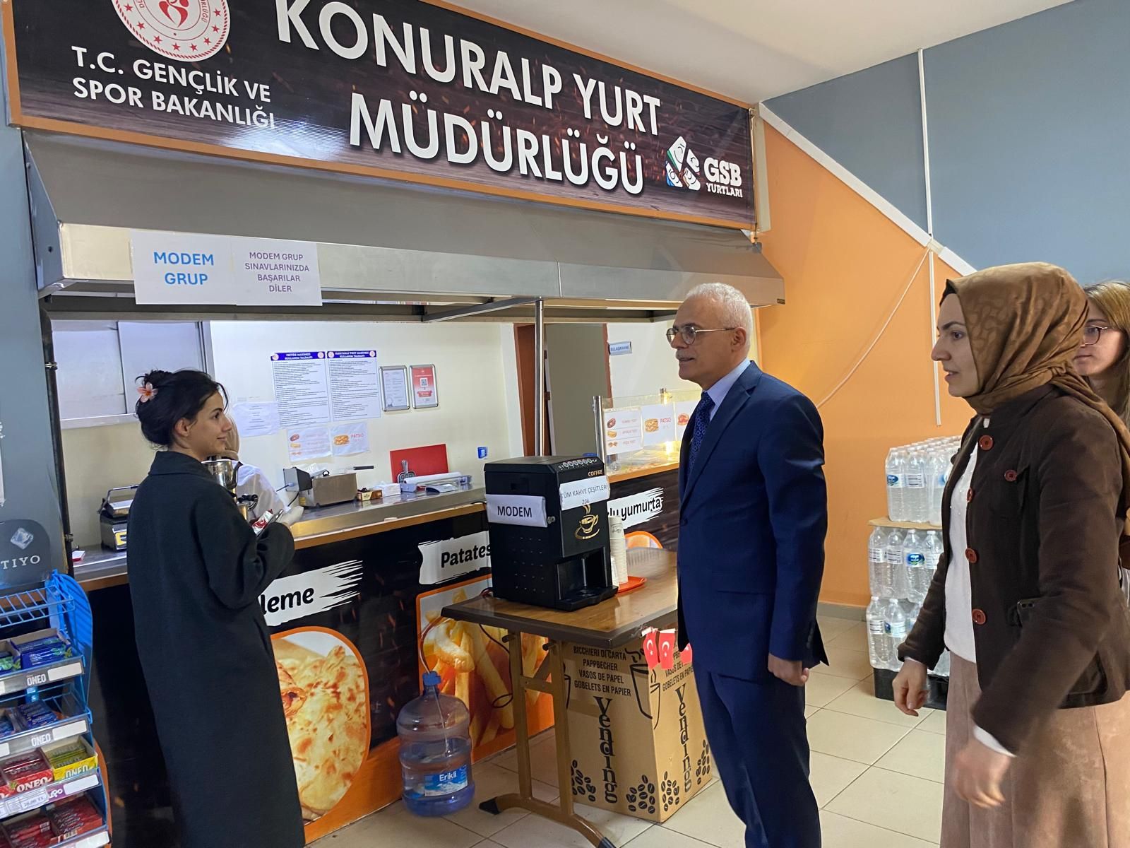 Düzce Gençlik ve Spor İl Müdürü Zekeriya Arslantürk, Konuralp Yurdu’nu ziyaret ederek birimlerde incelemelerde bulundu. Yurt içerisindeki çalışma alanlarını tek tek gezen Arslantürk, personelden yürütülen faaliyetler ve öğrencilere sunulan hizmetler hakkında bilgi aldı.