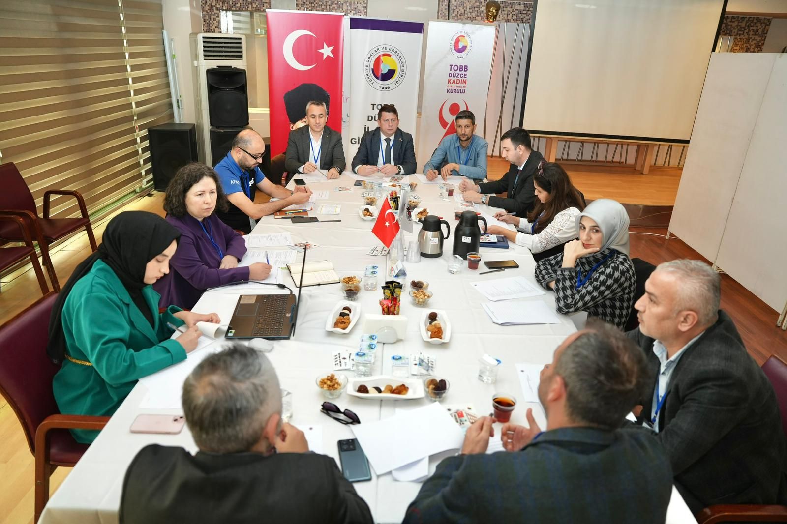 Düzenlenen çalıştay toplantılarına Düzce TSO Yönetim Kurulu ve Meclis Üyeleri, Komite Üyeleri, Kadın ve Genç Girişimciler Kurullarının yanı sıra Düzce Valiliği, Düzce Üniversitesi, Düzce Belediyesi, Jandarma Komutanlığı, Emniyet Müdürlüğü, Milli Eğitim Müdürlüğü, Aile ve Sosyal Hizmetler Müdürlüğü, Gençlik ve Spor Müdürlüğü, Sağlık Müdürlüğü, İŞ-KUR, SGK, DESOB, Akçakoca TSO, Akçakoca OSB, 1. OSB, 2. OSB, Gümüşova OSB, Çilimli OSB, Köylere Hizmet Götürme Müdürlüğü, İl Özel İdaresi, Vergi Dairesi, Ticaret Borsası, Tarım ve Orman Müdürlüğü, Orman İşletme Müdürlüğü, Sanayi ve Teknoloji Müdürlüğü, Kültür ve Turizm Müdürlüğü, Kızılay, Yeşilay, Dergaz, Sedaş, Türk Telekom, Mevlana Mesleki ve Teknik Anadolu Lisesi, Borsa İstanbul Mesleki ve Teknik Anadolu Lisesi, Düzce Meslek Yüksekokulu, Sosyal Bilimler Meslek Yüksekokulu, Akçakoca Turizm Fakültesi, TURSAB, MARKA, Düzce SMMMO, Teknopark, Teknoloji Transfer Ofisi, DSİ 55. Bölge Müdürlüğü, Karayolları Bölge Müdürlüğü, MÜSİAD Düzce Şubesi, Denetimli Serbestlik Müdürlüğü, Mesleki Eğitim Merkezi Müdürlüğü, Halk Eğitim Merkezi, Halkbank, Ziraat Bankası, Emlak Katılım Bankası, Ziraat Katılım Bankası, Vakıf Katılım Bankası’ndan temsilciler katılım sağladı.