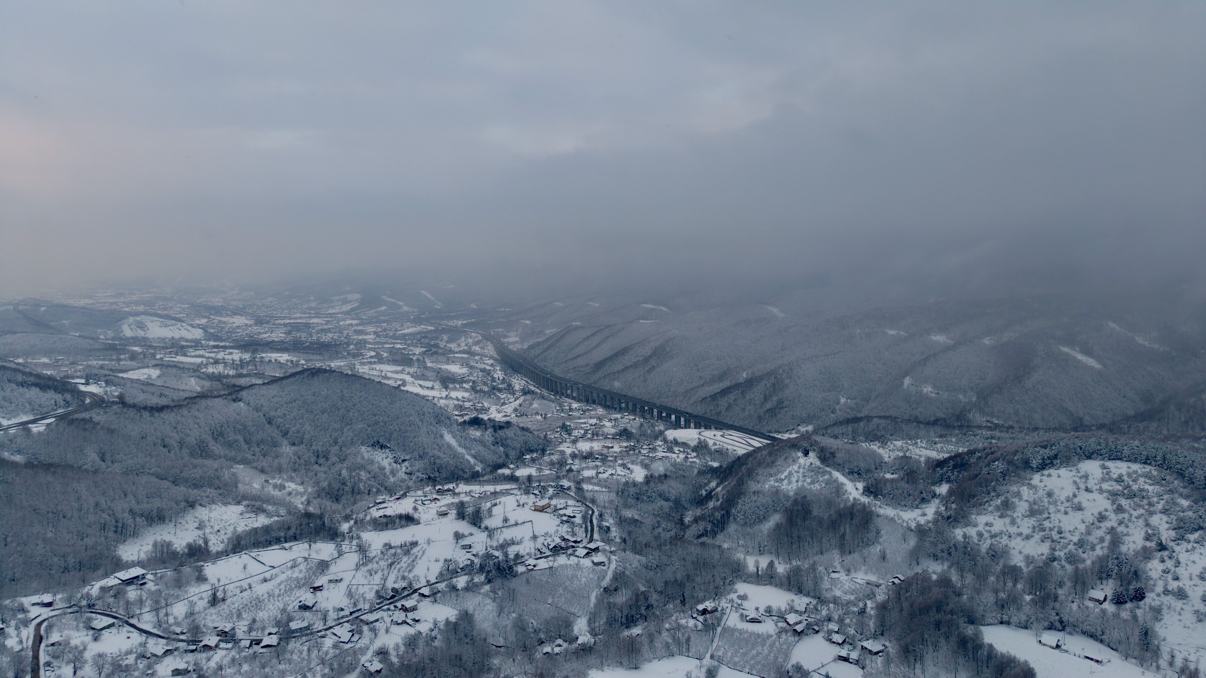 İstanbul ile Ankara arasında ulaşımı sağlayan D-100 kara yolu ve Anadolu Otoyolu'nun Bolu Dağı kesiminde etkili olan yağışın ardından ormanlık alanlar karla kaplandı. Bölgedeki çam ağaçlarının beyaz örtüyle bütünleşmesi ve iki ana ulaşım aksının aynı karede yer aldığı anlar havadan kayda alındı.