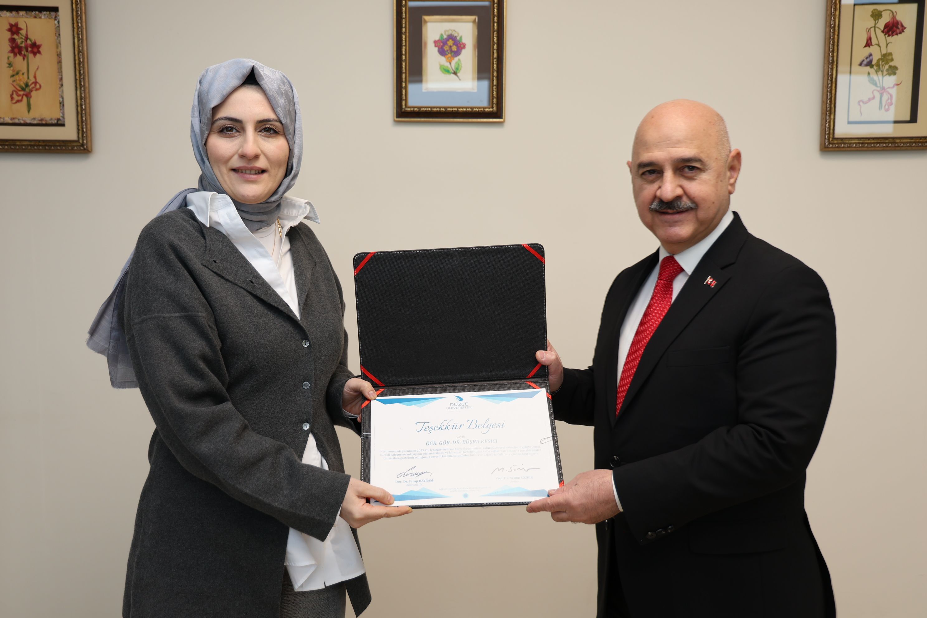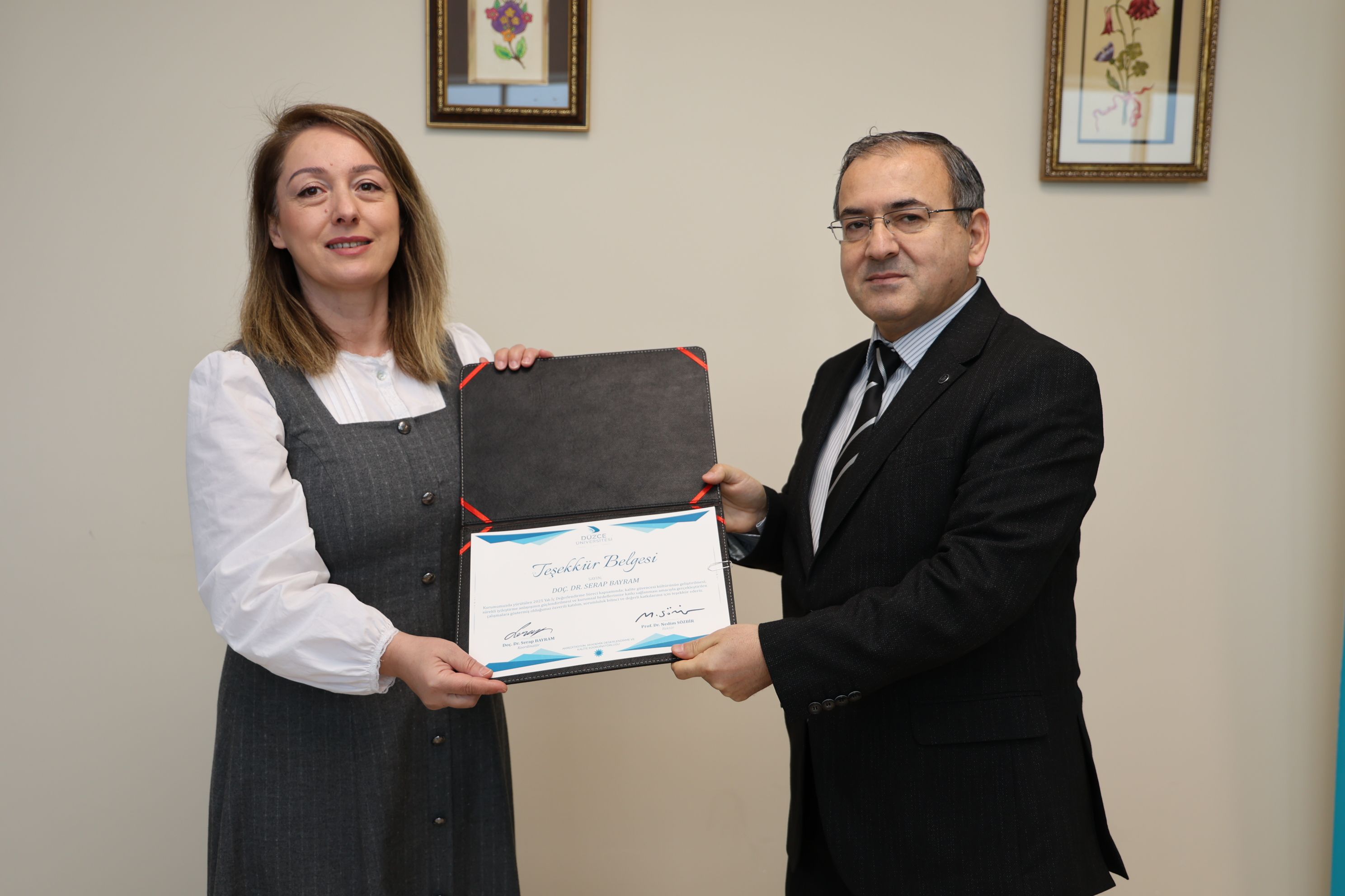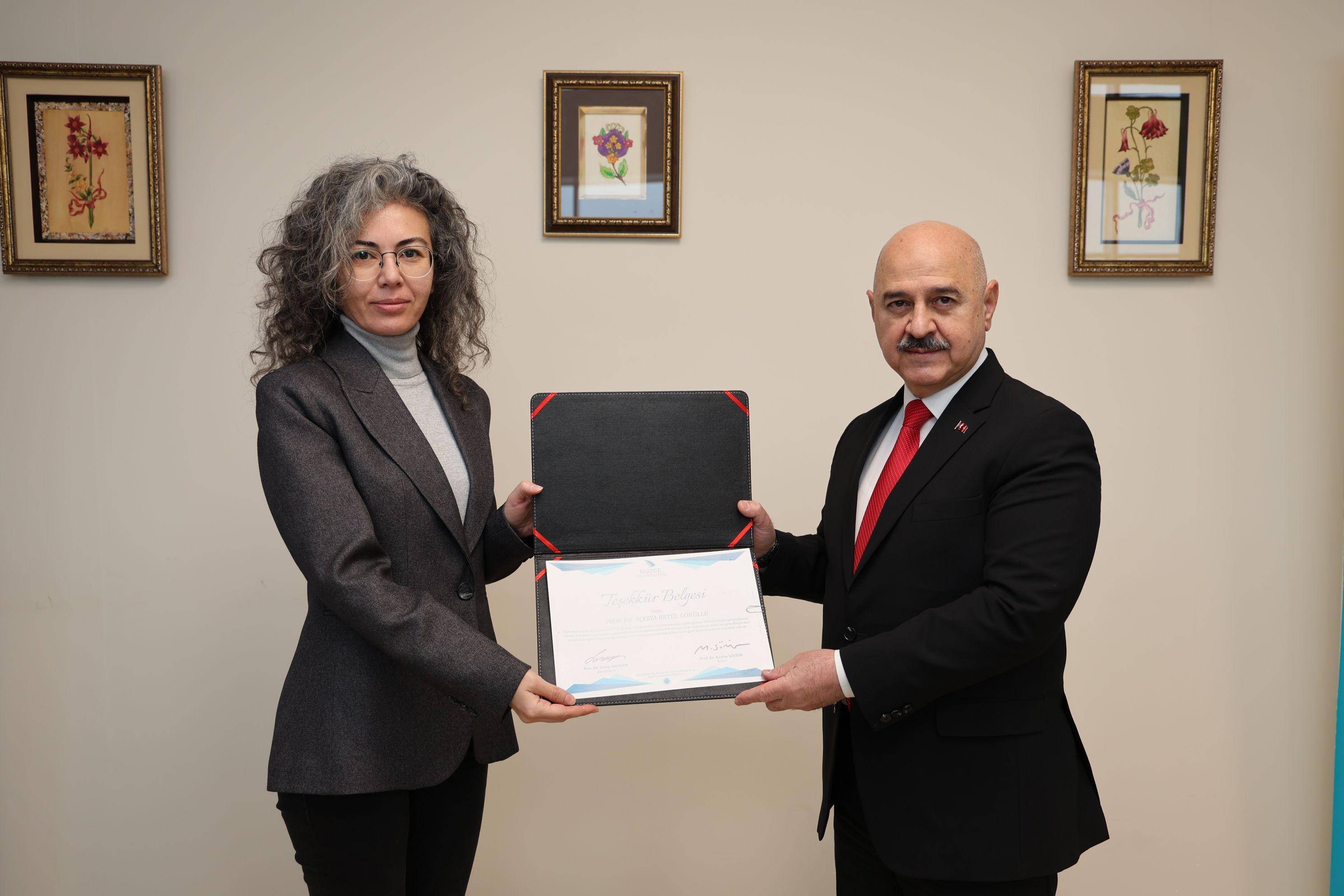 Düzce Üniversitesi Rektörü Prof. Dr. Nedim Sözbir, 2025 Yılı İç Değerlendirme Süreci kapsamında; kalite güvencesi kültürünün geliştirilmesi, sürekli iyileştirme anlayışının güçlendirilmesi ve kurumsal hedeflere ulaşılması amacıyla gerçekleştirilen çalışmalara sağladıkları özverili ve değerli katkıları için iç değerlendirme ekip üyelerini tebrik ederek teşekkür belgesi takdim etti.