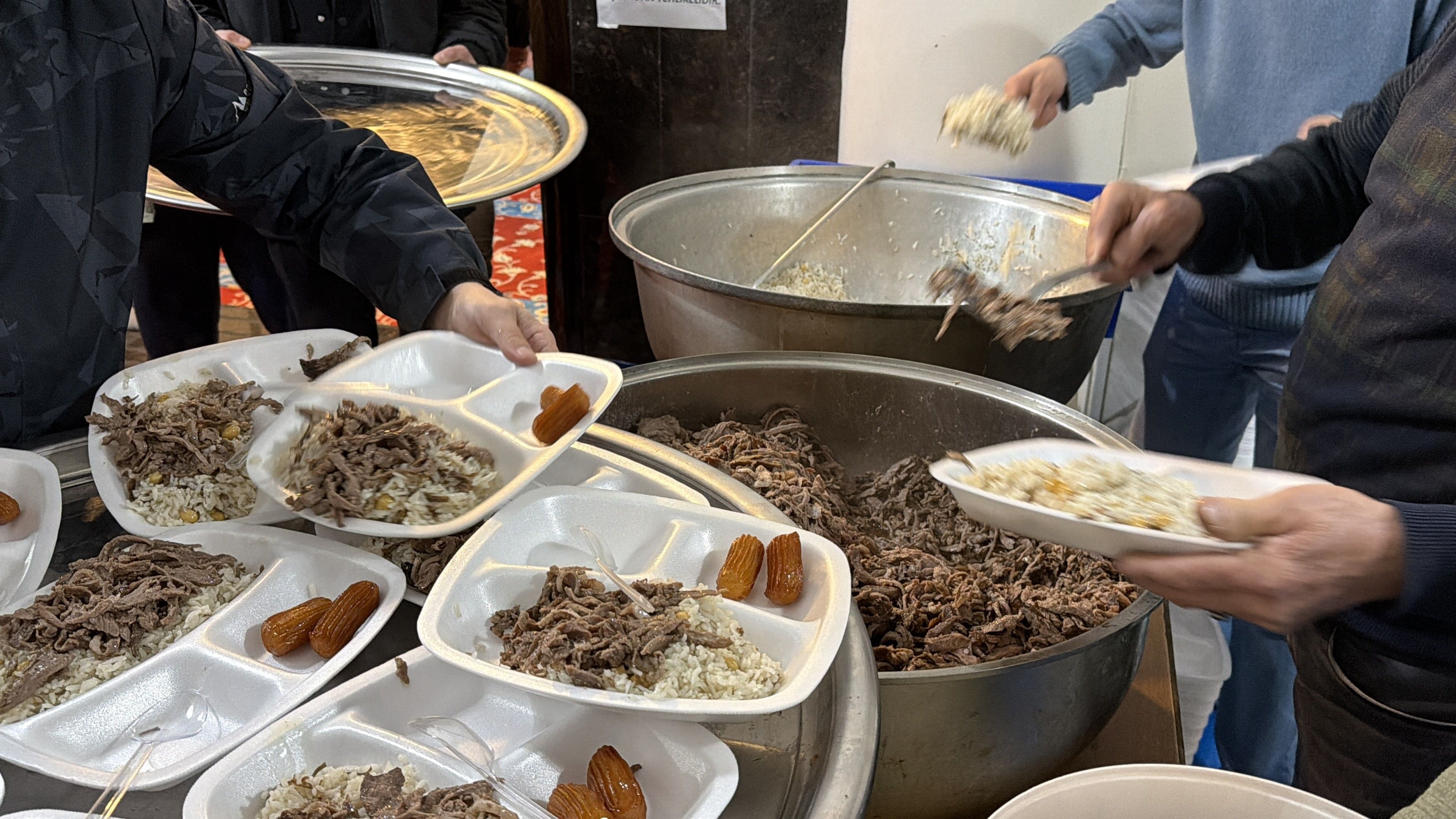 Bu yıl mevlid programına farklı bir ikram eklediklerini ifade eden Mısır, "Bu akşamki mevlidimize bir ek daha sunduk. Cemaatle daha fazla haşır neşir olalım, biraz daha dikkat çeksin diye et döner de ikram ettik. Geleneğimiz her taraftan takip ediliyor" şeklinde konuştu.