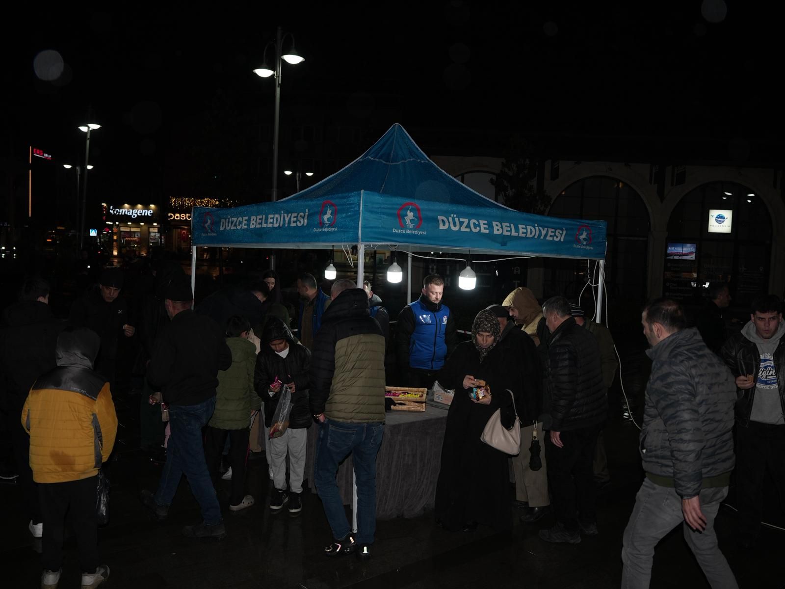 Düzce Belediyesi, Berat Kandili dolayısı ile Cedidiye Camii önünde kurduğu statlarda kandil şekeri ve çeşitli ikramlıklar dağıtarak vatandaşların kandillerini kutladı.