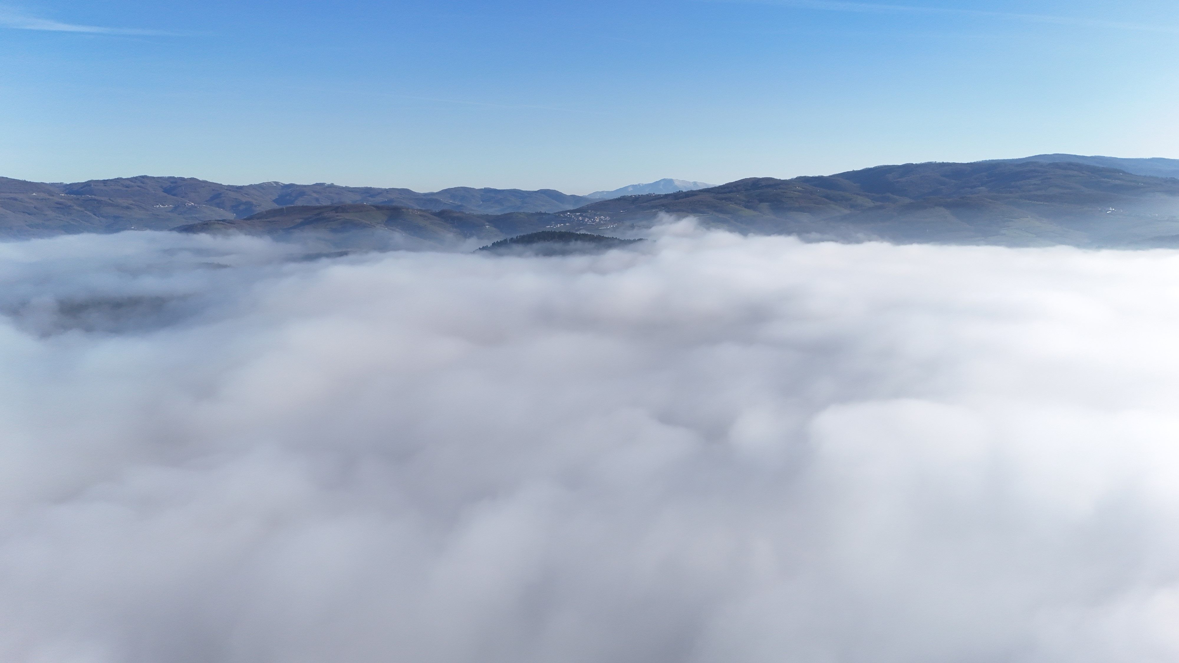 Kentin üzerini kaplayan yoğun sis tabakası, dron ile havadan görüntülendi. Kaydedilen görüntülerde, binaların ve şehir silüetinin zaman zaman sis içinde kaybolduğu görüldü.