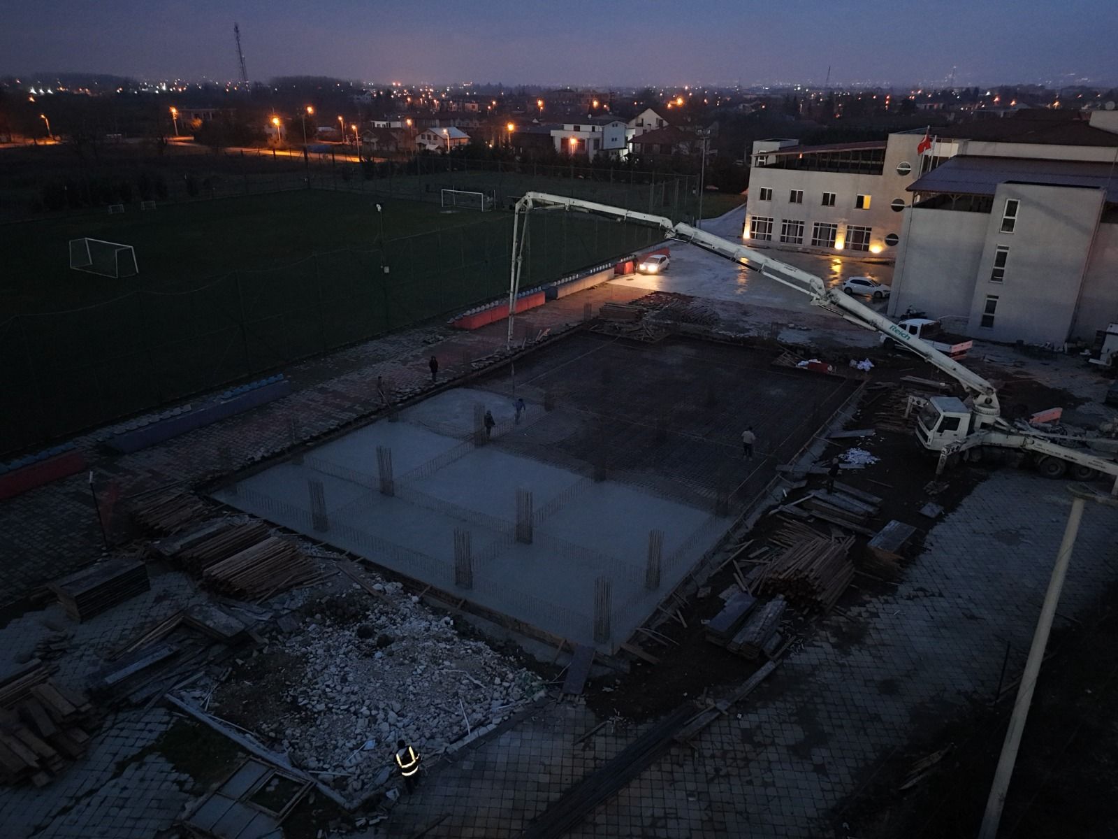 Geçtiğimiz haftalarda gerçekleştirilen ihale sürecinin ardından yüklenici firma tarafından başlatılan çalışmalar kapsamında temel kazıları tamamlanan Düzcespor Altyapı Konaklama Tesisi’nin temeli atılarak inşaat süreci fiilen başladı. Düzcespor’un altyapı faaliyetlerine önemli katkı sağlaması hedeflenen tesis, genç sporcular için konforlu bir yaşam alanı sunacak.