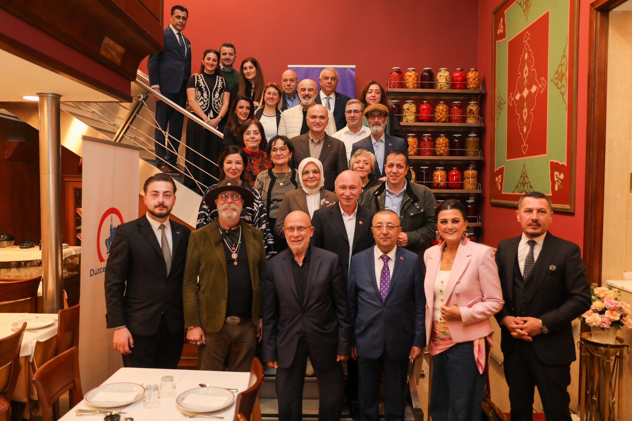 Düzce Belediye Başkanı Dr. Faruk Özlü’nün organize ettiği Düzce Yemekleri Özel Gecesi buluşması İstanbul’un simge mekanlarından, 138 yıllık Hacı Abdullah Restoran’da birbirinden önemli isimlerin katılımıyla gerçekleşti. Düzceli şeflerin elinden, Düzce’nin yöresel ürünleri ile hazırlanan aralarında coğrafi işaretli ürünlerin de olduğu 20 çeşit ikramlık, İstanbul Valisi Davut Gül, Düzce Milletvekili Ayşe Keşir, TSO Başkanı Erdoğan Bıyık ile gastronomi dünyasının yazarları, şefler ve işletme sahiplerine sunuldu.