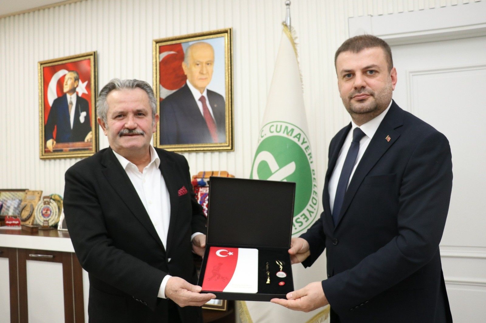 Cumayeri Esnaf ve Sanatkarlar Odası Başkanı Aydın Garip ve yönetimi, Cumayeri Belediye Başkanı Mustafa Koloğlu ile bir araya gelerek ilçe esnafına yönelik çalışmalar üzerine görüş alışverişinde bulundu.