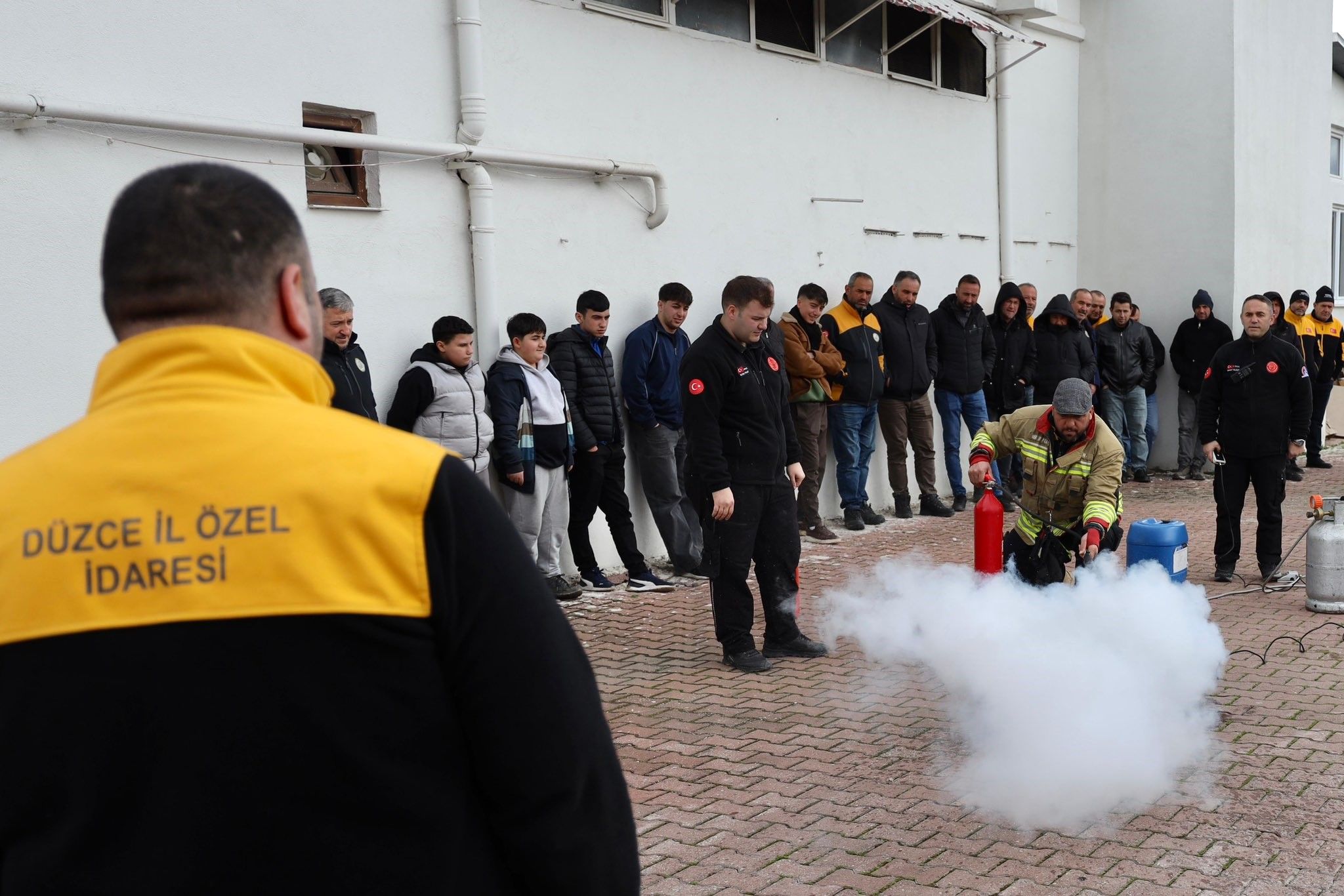 Düzce İl Özel İdaresi tarafından, çalışanlara yönelik periyodik olarak düzenlenen İş Sağlığı ve Güvenliği eğitimi ile yangın söndürme tatbikatı gerçekleştirildi.