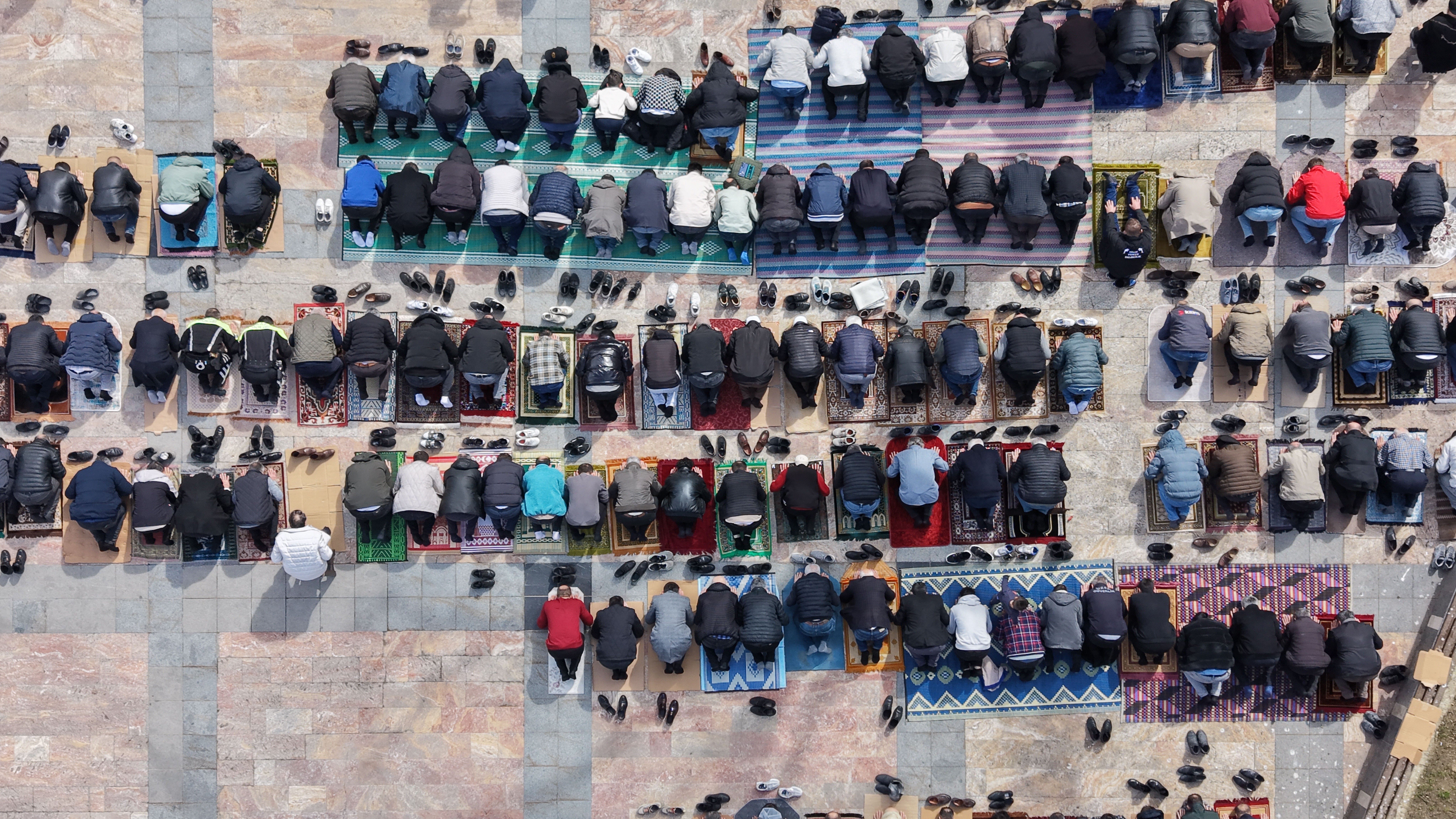 Öte yandan, Düzcelilerin Ramazanın ilk cuma namazı için cami avlularını ve bahçelerini doldurduğu o anlar dron ile havadan da kaydedildi.