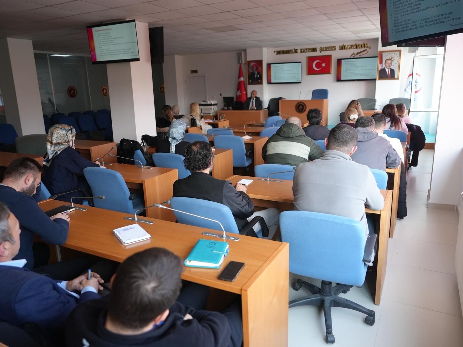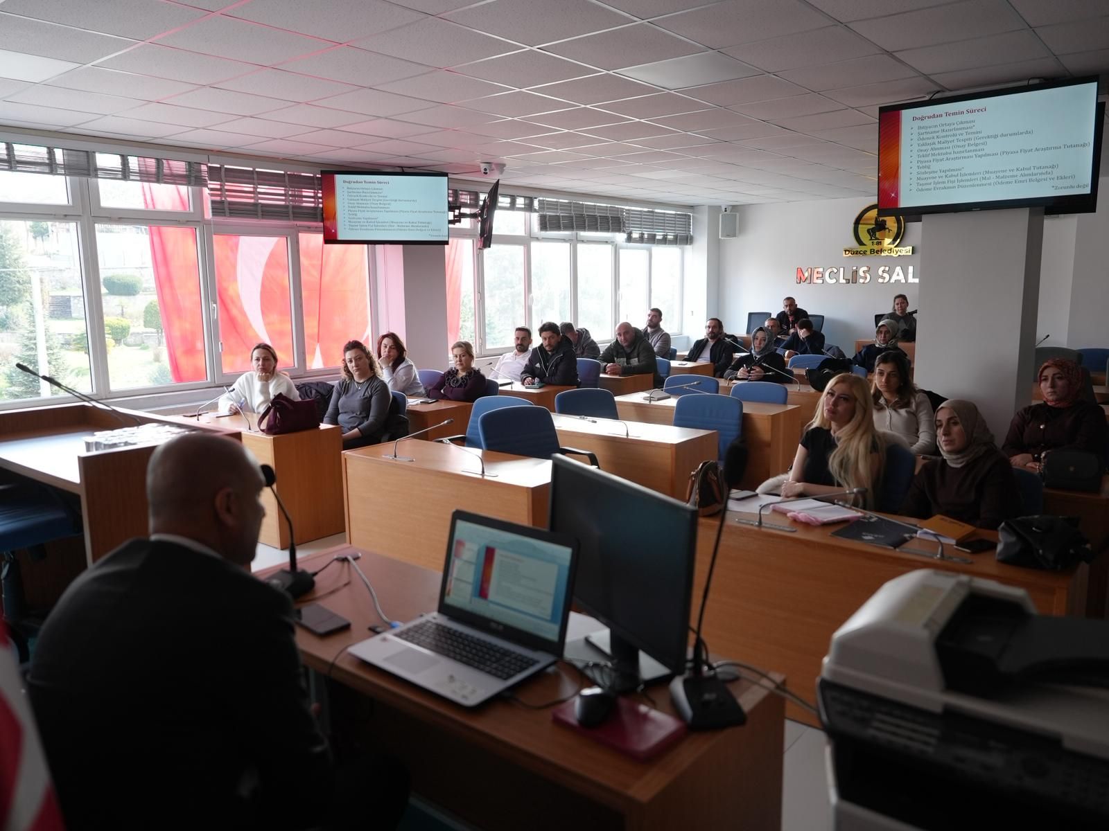 Düzce Belediyesi tarafından personellere yönelik hizmet içi eğitim gerçekleştirildi. Konuralp Hizmet Binası Meclis Toplantı Salonunda gerçekleştirilen eğitimde, özellikle 4734 sayılı Kamu İhale Kanunu, 4735 sayılı Kamu İhale Sözleşmeleri Kanunu ve ilgili ikincil mevzuat hükümleri çerçevesinde; ihale süreçlerinin planlanması, yaklaşık maliyetin hazırlanması, ihale dokümanlarının düzenlenmesi, tekliflerin değerlendirilmesi ve sözleşme aşamasına kadar olan süreçler detaylı şekilde anlatıldı.