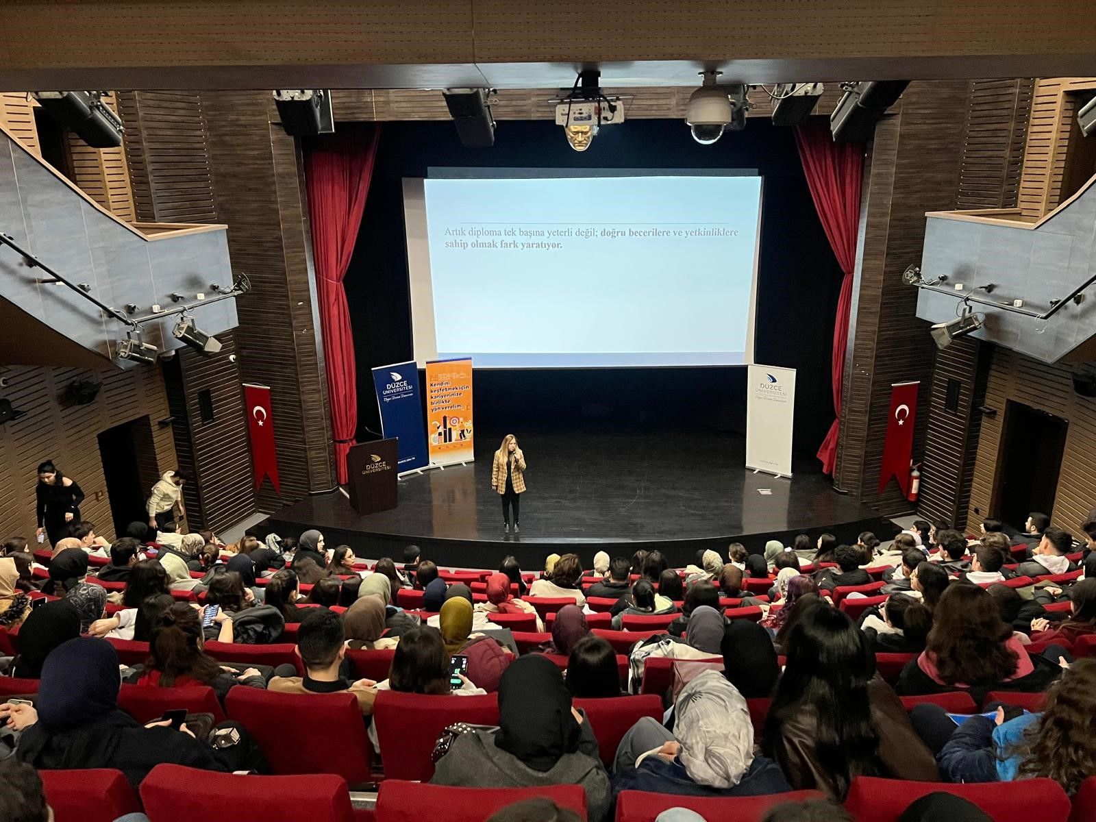 Öğrencilerin yoğun ilgi gösterdiği etkinlik, kariyer planlamasında yeni nesil becerilerin önemine dikkat çekerken, katılımcılara değişen iş dünyasına uyum sağlayabilmeleri için somut öneriler sundu.