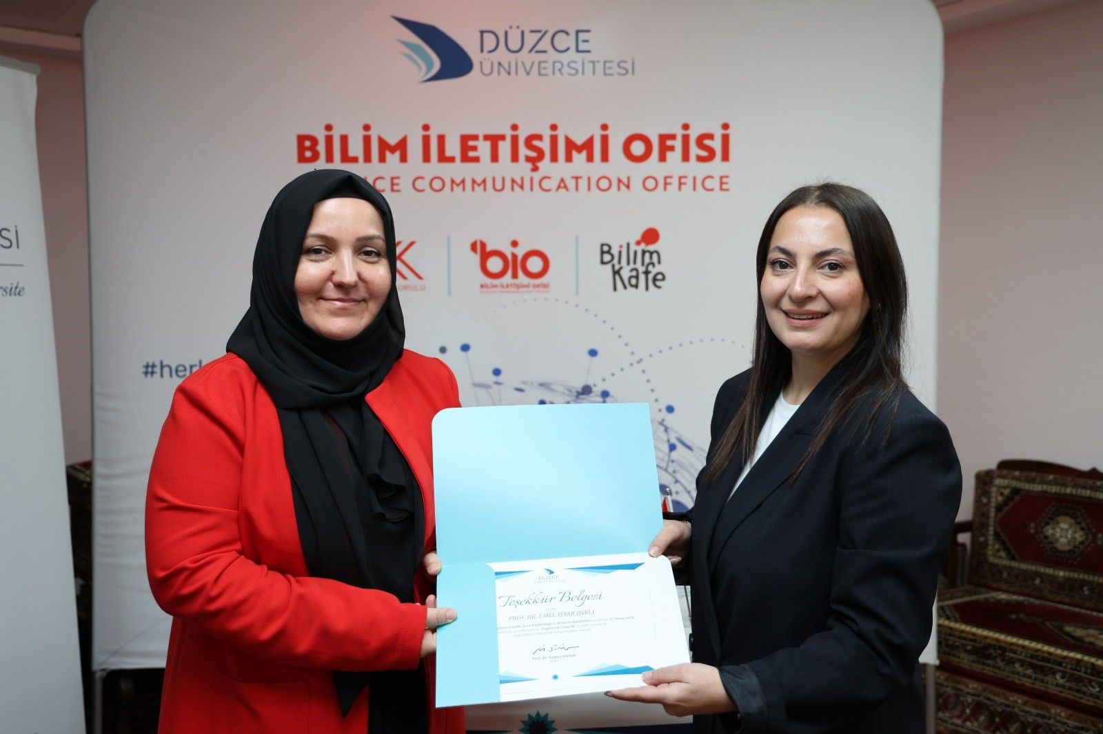 Samimi bir sohbet havasında geçen Bilim Kafe buluşması, teşekkür belgesi takdimi ve fotoğraf çekimi ile sona erdi.