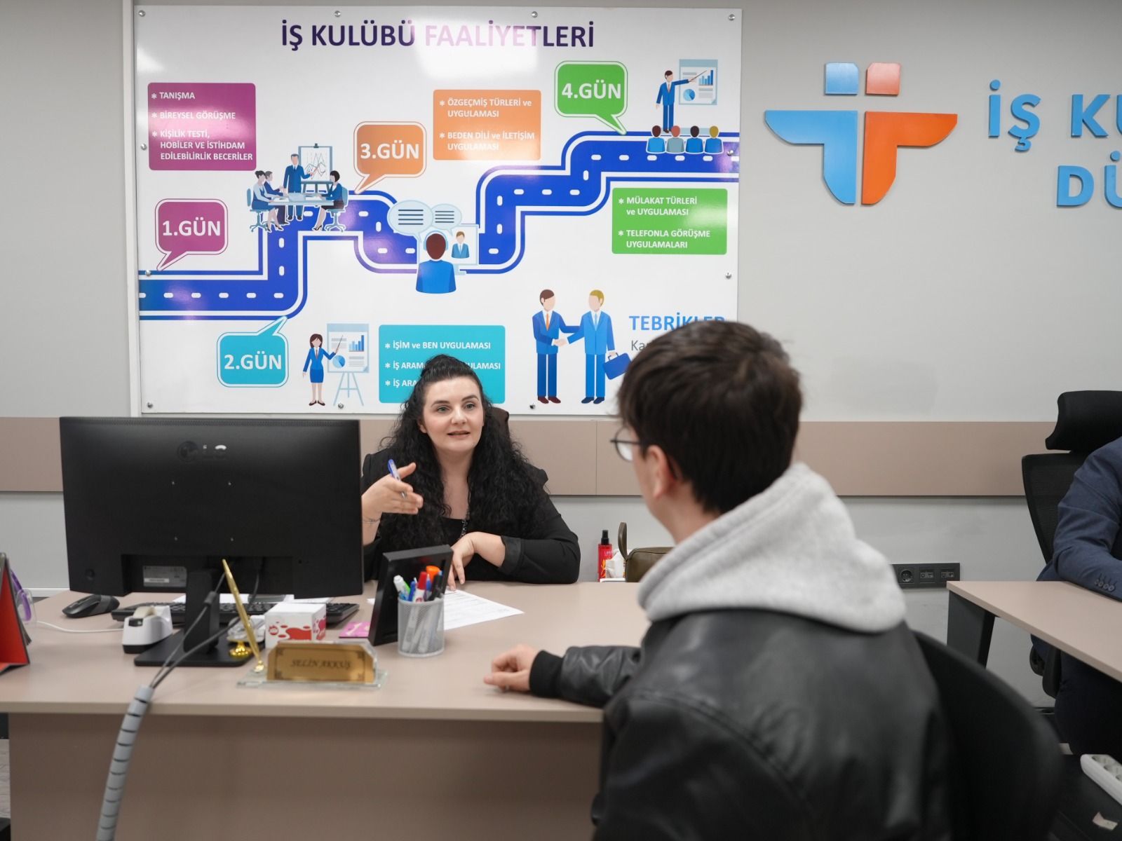 İş Kulübü Sorumlusu Dilale Seyyar, kulübün “İşin Özü İnsan” sloganıyla özellikle kadınlar, gençler, engelliler ve uzun süredir işsiz olanlara rehberlik ederek aktif iş gücüne katılmalarına olanak sağladıklarını belirtti.