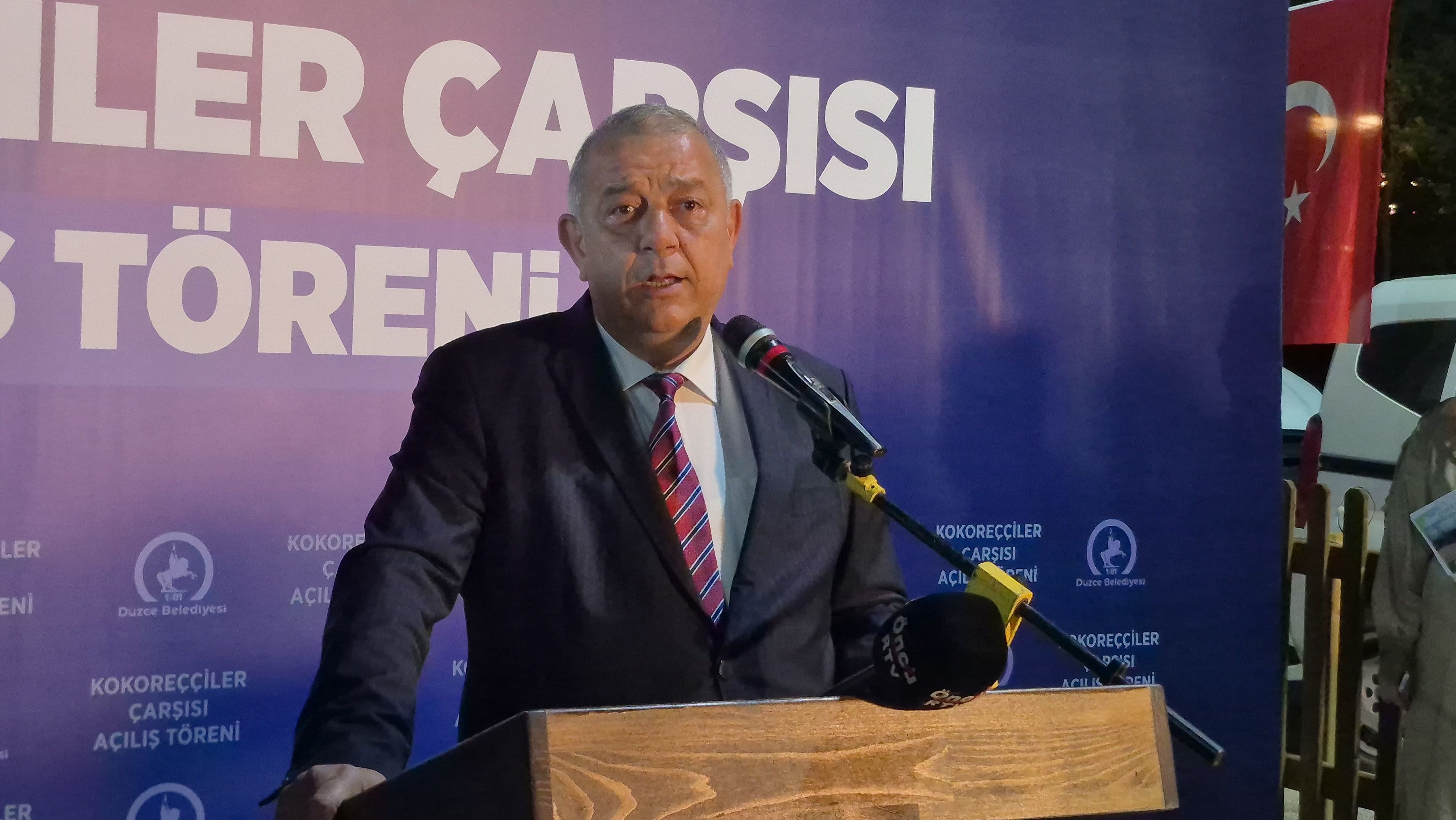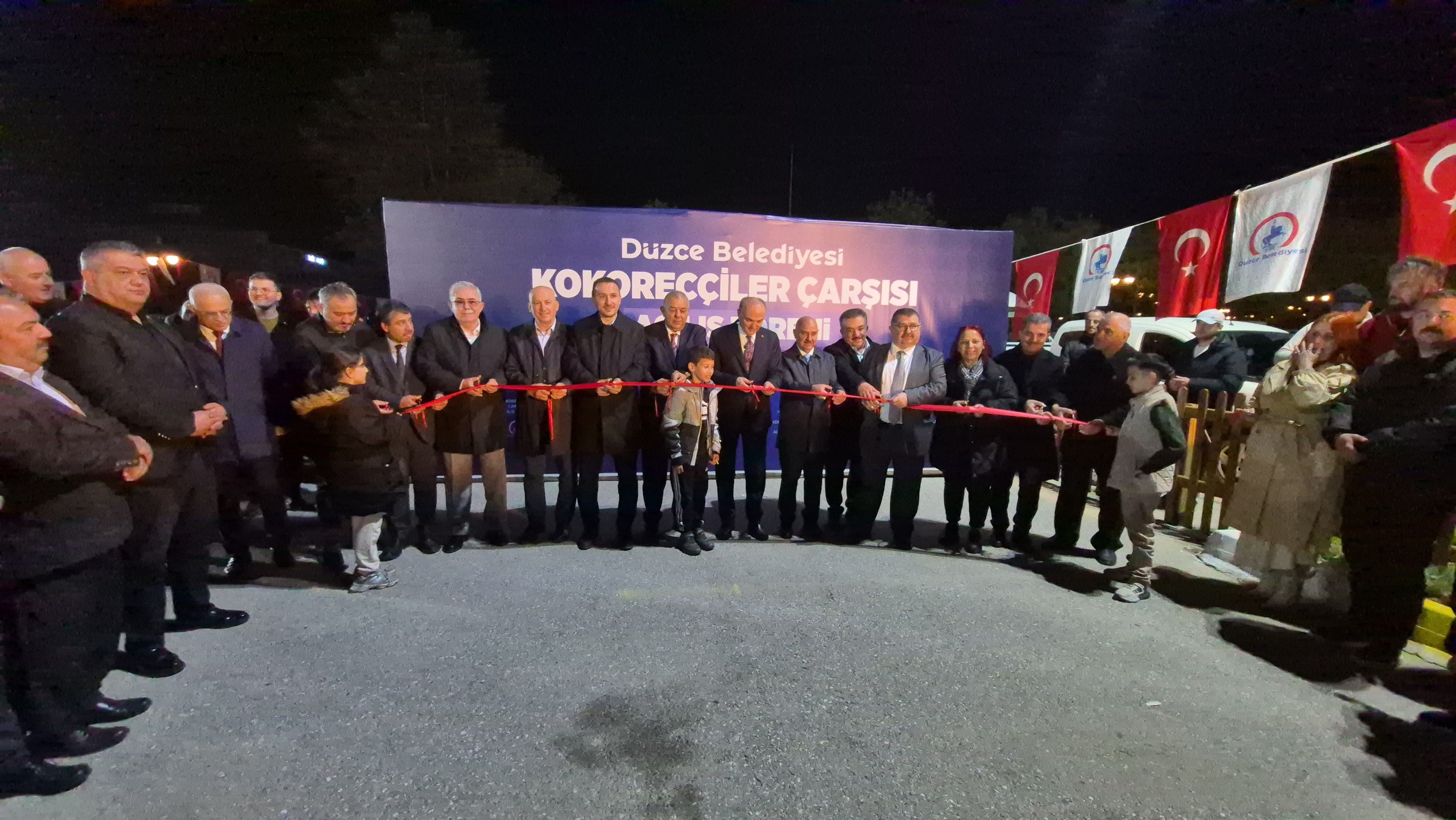 Açılışa; Düzce Belediye Başkanı Faruk Özlü, Düzce Üniversitesi Rektörü Prof. Dr. Nedim Sözbir, Ticaret ve Sanayi Odası Başkanı Erdoğan Bıyık, Düzce TSO Meclis Başkanı Tanju Acar, ilçe belediye başkanları ve davetliler katıldı. Açılışta konuşan Belediye Başkanı Faruk Özlü, Düzce'deki kokoreççilerin önceden bulunduğu ortamı anlatarak taşınma nedenlerini şu sözlerle anlattı, "Kokoreççilerin olduğu yer önceden Asar Deresi kenarında bir yerdi. Burası derme çatma bir yerdi. Tuvalet sıkıntısı bile vardı. Bırakın hijyeni tuvaletleri bile doğru dürüst olmayan bir mekandı. Burayı taşımamız gerekiyordu. Yıkıyoruz diye eleştirenler oluyor. Biz önce yapıyoruz sonra yıkıyoruz. Kokoreççilerin yeni yeri şehir merkezine makul mesafede. Arkadaşlarım zaman zaman açılışları ya sabah 10.00'da yada öğlenden sonra 14.00'te yaptığımızı söylüyorlar ancak burasını akşam açıyoruz. Çünkü burası kokoreççiler çarşısı. Yani burada kokoreç akşamları yenir. İnşallah sık sık buraya geleceğiz ve burada esnaflarımızın misafiri olacağız."