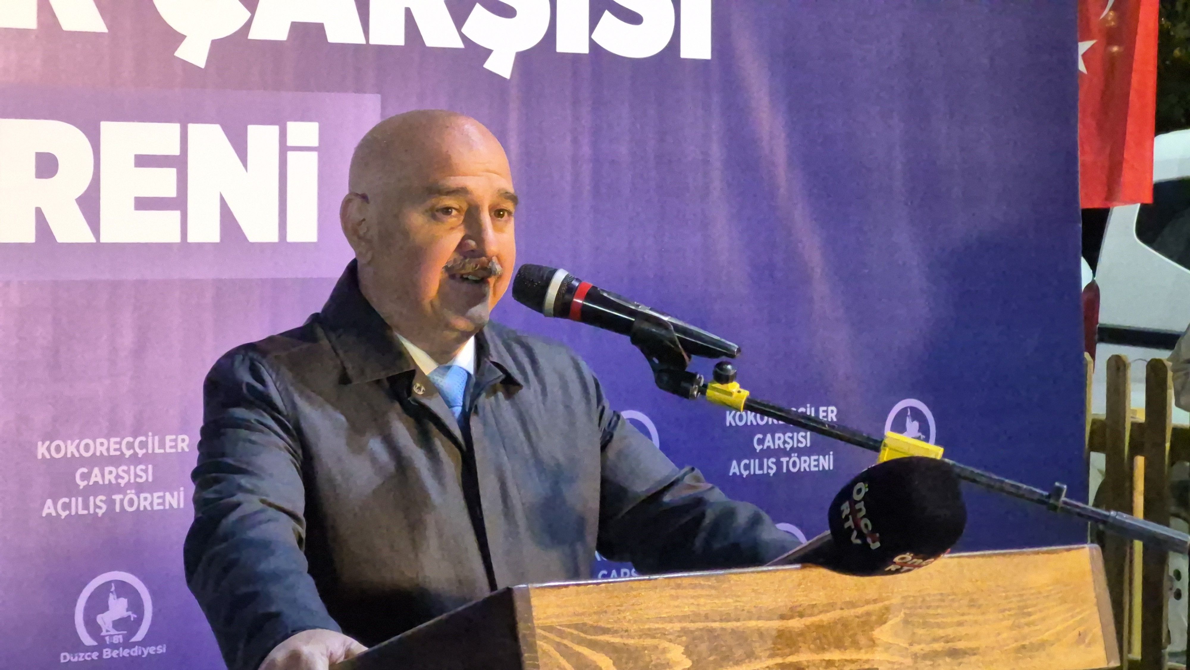 Rektör Nedim Sözbir; "Belediye Başkanımız Faruk Özlü devlet tecrübesini kendisi burada bizzat sergiliyor. Devletin üst kademesinde bakanlık yapmış ve şimdi de Düzce'ye hizmet ediyor. Özellikle üniversite olarak her faaliyetimize destek oluyor, paydaş oluyor. Fazlasıyla biz destek alıyoruz. Bu destekler üniversitemiz için çok önemli. Burada yapılan çalışmada şehrimiz için ve kokoreç severler için çok önemli. Şehrin güzelleşmesi adına güzel bir adım. Hem üniversitemiz adına hem de Düzce'de yaşayan birisi olarak kendisine teşekkür ederim. Bu çarşısının hayırlı olmasını temenni ederim" dedi.