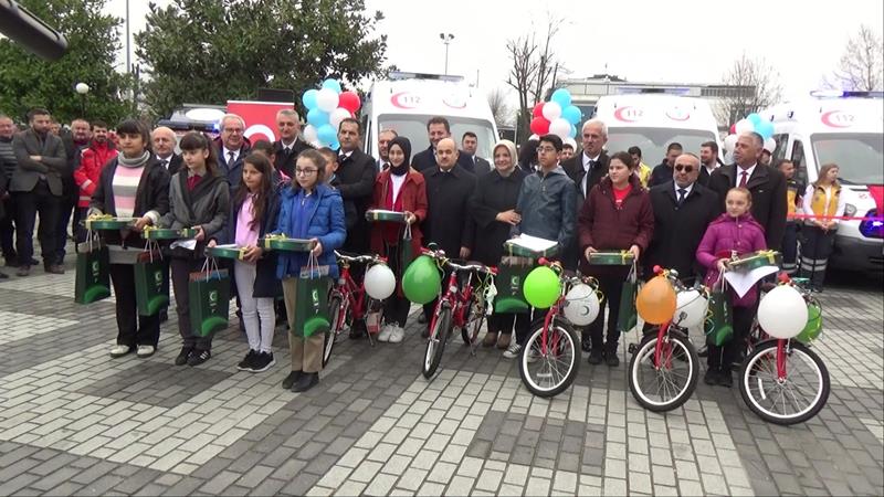 Düzce İl Sağlık Müdürlüğüne tahsis edilen ambulanslar bugün düzenlenen törenle teslim edildi. Valilik önünde düzenlenen törene, Val Zülkif Dağlı, Ak Parti Milletvekili Ayşe Keşir, İl Sağlık Müdürü Yasin Yılmaz, protokol üyeleri, daire müdürleri ve öğrenciler katıldı.