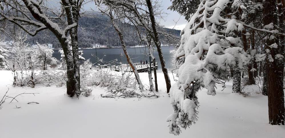 Bolu'nun önemli turizm destinasyonlarından Abant Gölü Milli Parkı, kar yağışı ile birlikte güzel bir görünüme büründü.