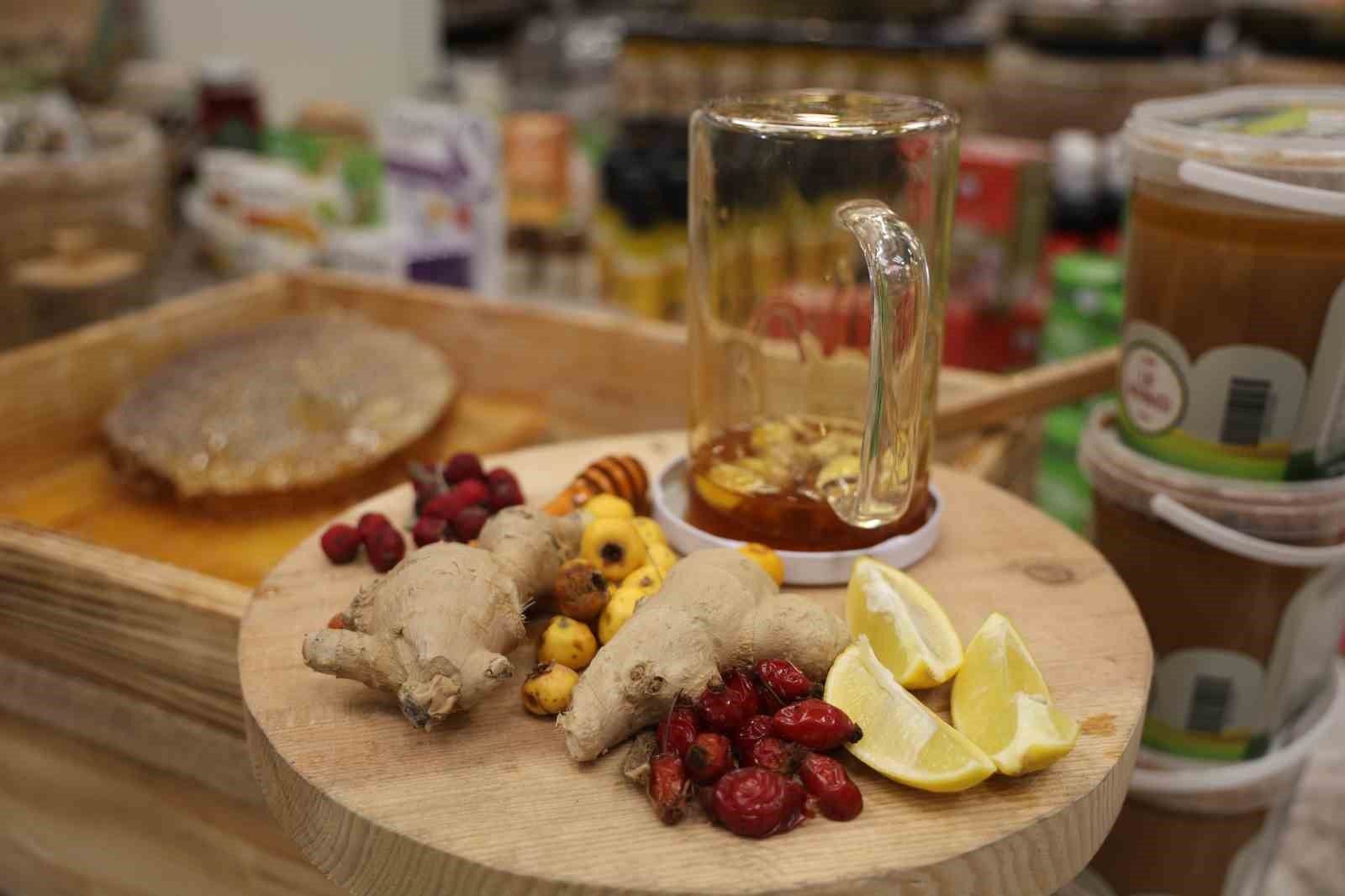 Tıbbi ve Aromatik Bitkiler Teknikeri Şerife Akkuş, "Organik bal ile beraber taze zencefili evde pratik uygulayabileceğimiz şurup kıvamında yapabileceğimiz güzel bir tarif hazırlayacağız. Taze zencefili dilimleyip tane tane küçük dilimler haline getiriyoruz. Kavanozumuzun içerisine belli bir miktar bal koyup içerisine ekliyoruz. Özellikle boğaz enfeksiyonuna, boğaz ağrısına, geçmeyen öksürükte ve bağışıklık sistemini kuvvetlendirmek adına evde 5 yaş sonrası herkesin kullanabileceği çok güzel bir şurup kıvamında ballı karışım. Bal ürünlerine veya zencefile alerjik reaksiyonu olan kişilerin kullanmasını tavsiye etmiyoruz. Onun dışında günlük dozajı bellidir, sabah ve akşam bir tatlı kaşığı şeklinde evden çıkmadan veya okula gitmeden önce alabilirsiniz" dedi.