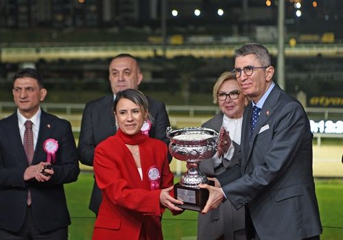 İstanbul Veliefendi Hipodromu'nda bu yıl 10'uncusu düzenlenen Dünya Kadınlar Günü Koşusu için 3 yaşlı dişi İngiliz tayları piste çıktı. 7 Mart Cumartesi akşamı 10’uncusu gerçekleştirilen bu anlamlı mücadeleyi Şeyda Ercan’ın sahibi olduğu Jaehaera jokeyi Ali Yıldız idaresinde kazanmayı başardı. Emrah Agun tarafından yetiştirilen, antrenörlüğünü ise Alper Tepebaşı’nın üstlendiği doru dişi tay, onuncu startında dördüncü galibiyetini hanesine yazdırdı. Yarış sonrası Şeref Tribünü’nde düzenlenen törende, kazanan safkanın sahibi adına Çınar Kaymakamı Zikrullah Erdoğan’ın eşi Nehar Erdoğan'a kupasını, İstanbul Valisi Davut Gül’e vekaleten İstanbul Vali Yardımcısı Ünal Kılıçarslan takdim etti. Törene, Bakırköy Kaymakamı Recai Karal, KKTC Başkonsolosu Zalihe Mendeli, İstanbul İl Tarım ve Orman Müdürü Suat Parıldar, İBB Gençlik ve Spor Müdürü İlker Öztürk, Kulübümüz Genel Sekreteri Gülnur Gülerce ve davetliler katıldı. Anlamlı etkinliğe ev sahipliği yapan hipodroma gelen kadın yarışseverlere günün anısına nallı bileklik hediye edildi.